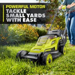 RYOBI 40-V-2-in-1-Rasenmäher-Set mit 18 Schiebern draussen 6V8HV6232