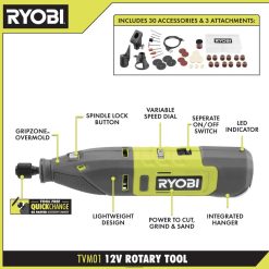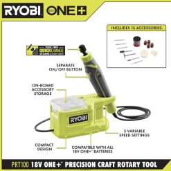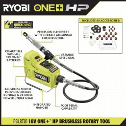 ryobi stellt das 1.2a-Rotationswerkzeug vor. Die drei variablen Geschwindigkeitseinstellungen des Rotationswerkzeugs bieten Benutzern bedarfsgerechte Leistung und maximale Kontrolle mit 5.000, 15.000 und 35.000 Nenndrehzahlen. Mit der neuen innovativen Schnellwechsel-Spannzange mit 4-mal schnellerem Zubehörwechsel können Sie Zubehör jetzt schnell und einfach austauschen. Dieses Rotationswerkzeug verfügt außerdem über eine Komfortgriff-Ummantelung für mehr Kontrolle in jeder Position. Das 1.2a-Rotationswerkzeug ist mit der 3-Jahres-Herstellergarantie von Ryobi ausgestattet und umfasst 15 Schleif-/Schneid-/Schleif-/Polierzubehörteile, 1 Aufsatz, Schraubenschlüssel, Aufbewahrungskoffer für Zubehör, USB-Kabel und Bedienungsanleitung.