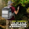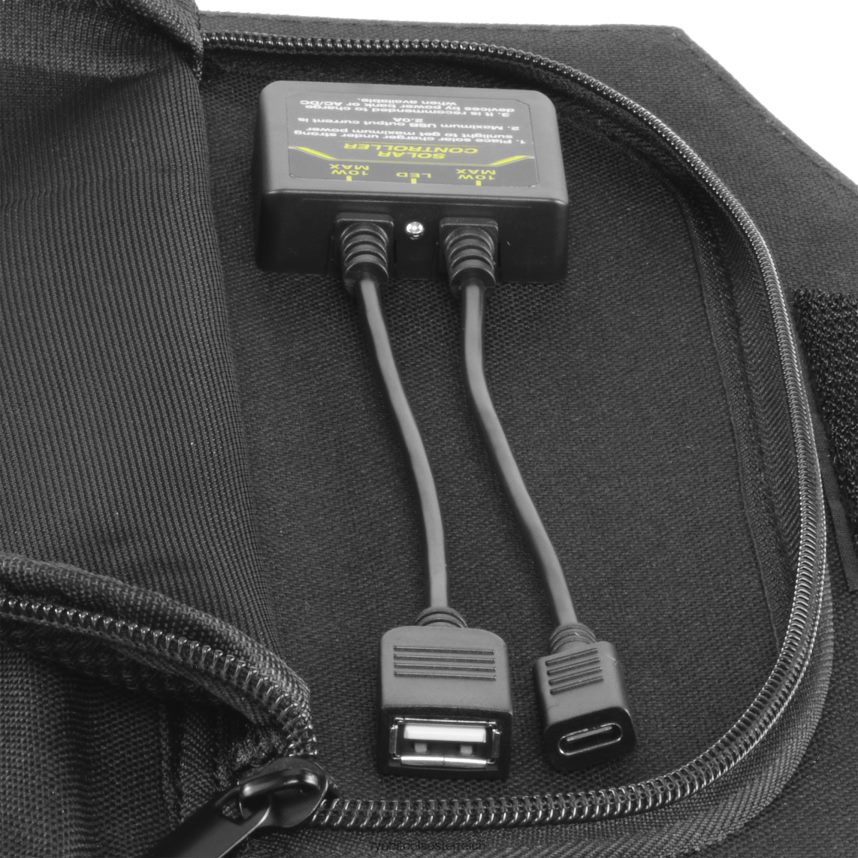 Das faltbare 14-Watt-Solarpanel von Ryobi versorgt jedes kleine elektronische Gerät mit einem USB-A- oder USB-C-Anschluss direkt von der Sonne mit Strom. Es ist ideal für die Stromversorgung Ihrer Telefone, Tablets, Powerbanks, Lautsprecher und sogar Ihrer Ryobi 18V One+-Batterien, wenn es mit einer kompatiblen Ryobi-Stromquelle kombiniert wird. Es kann einen Ryobi 18V One+ 2Ah Akku in weniger als 4 Stunden und Ihr Telefon in nur 2 Stunden und 20 Minuten aufladen. Das 14-Watt-Solarpanel maximiert die Mobilität Ihrer Stromquelle, wiegt nur 0,5 kg und misst im zusammengeklappten Zustand 31 x 16,5 cm. Das kompakte, leichte und faltbare Design erleichtert die Aufbewahrung und den Transport, sodass Sie es zum Aufladen von Geräten beim Wandern, Camping, am Strand und überall in der Sonne mitnehmen können, wo Sie tragbare Stromversorgung benötigen. es kann offen seinSie können es flach auf dem Boden aufstellen, um während der Hauptsonnenstunden das Licht einzufangen, oder es kann mithilfe der (7) integrierten Aufhängeösen in verschiedenen Winkeln aufgehängt werden, um die Lichtmenge zu maximieren, die es einfängt. Für das 14-Watt-Solarpanel von Ryobi gilt die 3-jährige Herstellergarantie von Ryobi. Außerdem sind das faltbare 14-Watt-Solarpanel Ryobi und eine Bedienungsanleitung enthalten.