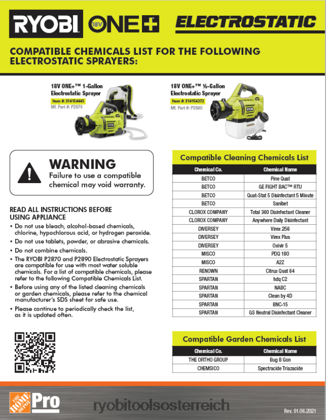 Betreten Sie das Ryobi 18V One+ System mit dem 18V One+ Gallon elektrostatischen Sprühgerät-Kit. Der leistungsstarke Motor bietet eine Sprühreichweite von 2 bis 10 Fuß und bis zu 30 Gallonen pro Ladung. Erleben Sie außergewöhnliche Leistung mit nur einem Knopfdruck, ohne dass manuelles Pumpen erforderlich ist. Elektrostatische Sprühgeräte von Ryobi nutzen elektrostatische Technologie, um Partikel positiv aufzuladen, damit Lösungen schneller und gleichmäßiger Oberflächen bedecken können, wodurch der Chemikalienverbrauch reduziert und die Effizienz gesteigert wird. Der durchsichtige Gallonentank ist ideal für die Verwendung mit Reinigungslösungen, Herbiziden, Insektiziden, Fungiziden und den meisten anderen Rasen- und Gartenchemikalien. Bewältigen Sie eine Vielzahl von Anwendungen mit dem einstellbaren 3-in-1-Düsenwähler. Aktivieren Sie die elektrostatische Technologie bequem mit dem Ein-/AusschalterWechseln Sie und wählen Sie die gewünschte Tröpfchengröße zwischen 65 Mikrometer, 85 Mikrometer und 160 Mikrometer. Dank des leichten, tragbaren Designs und des Tragegriffs lässt es sich problemlos von einem Auftrag zum nächsten transportieren. Nutzen Sie Ihr Sprühgerät das ganze Jahr über mit einer Sprühlösung für jede Jahreszeit. Das Beste ist, dass es Teil des Ryobi One+-Systems ist, bei dem jede 18-V-One+-Batterie mit jedem 18-V-One+-Produkt funktioniert. Für dieses 18-V-One+-Gallonen-Elektrostatiksprühgerät gilt die dreijährige Herstellergarantie von Ryobi. Es umfasst das 18-V-One+-Elektrostatiksprühgerät P2809, die 18-V-2-Ah-Lithiumbatterie P190, das 18-V-Ladegerät P118B, (2) Handgelenkschlaufen und Bedienungsanleitungen.