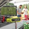Erweitern Sie Ihr Ryobi One+-System mit dem 800-Watt-Kfz-Wechselrichter, einer der vielseitigsten Stromquellen von Ryobi. Dieser Wechselrichter nutzt 18-V-One+-Batterien, einen 12-V-Autostromanschluss oder eine 12-V-Autobatterie für bequeme, tragbare Stromversorgung. Versorgen oder laden Sie mehrere Geräte und Kleingeräte wie Telefone und Laptops mit dem 12-V-Autoadapter (bis zu 120 Watt Leistung), Ventilatoren und Lichter mit einem 18-V-One+-Lithium-Akku (bis zu 300 Watt Leistung) und sogar Fernseher und Slow Cooker über eine Autobatterie (bis zu 800 Watt Leistung). Laden Sie ein Telefon bis zu sechs Mal auf oder betreiben Sie sogar einen 32-Zoll-Fernseher bis zu zwei Stunden lang mit nur (1) 18-V-Lithiumbatterie mit einer Kapazität von 4 Ah. Es ist ideal für Situationen wie abgelegene Freizeitnutzung, Reisen, abgelegene Baustellen, Laden während der Fahrt, dicht auffahrende KamerasPing oder wann immer Sie eine zuverlässige, tragbare Stromversorgung benötigen. Überwachen Sie die Ausgangsleistung, die Stromquelle, die Eingangsspannung und den Batteriestand mit dem integrierten LCD-Bildschirm. Sie können Ihren Bereich auch mit der LED-Arbeitsleuchte beleuchten. Dieser Wechselrichter verfügt über eine Vielzahl von Steckdosen, darunter (2) USB-A-Anschlüsse, (1) USB-C-PD-Anschluss, (2) 120-Volt-Wechselstromsteckdosen und (1) 12-V-Autostromanschluss. Das Beste ist, dass es Teil des Ryobi One+-Systems ist – jede 18-V-One+-Batterie funktioniert mit jedem 18-V-One+-Produkt. Für den 800-Watt-Auto-Wechselrichter gilt eine dreijährige Herstellergarantie. Er umfasst den 800-Watt-Wechselrichter RYI8030A, Krokodilklemmen, einen 12-V-Autoadapter, (4) Montagehalterungen und eine Bedienungsanleitung. Akku und Ladegerät sind separat erhältlich.