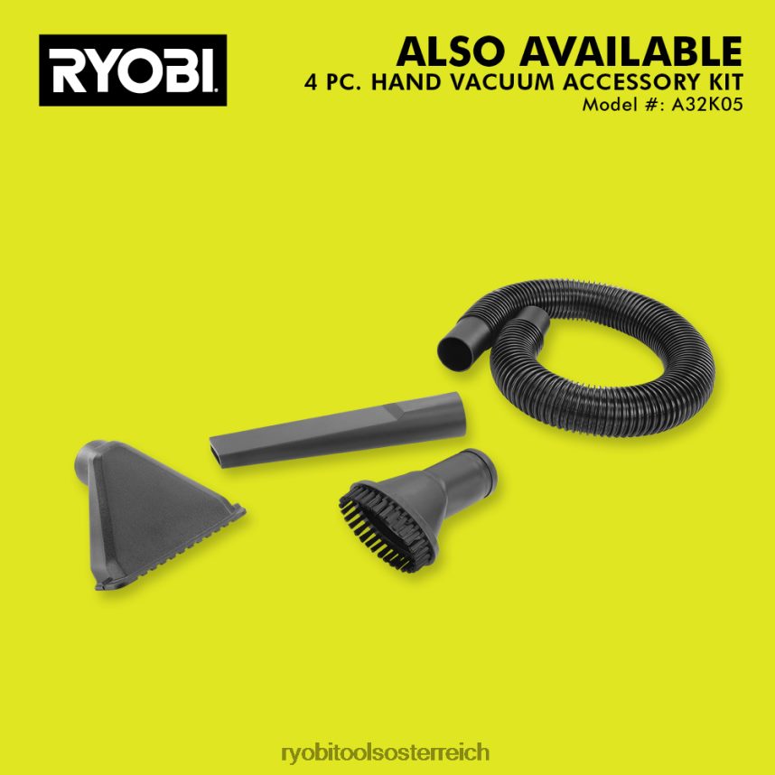 Ryobi führt das 18-V-One+-Handstaubsauger-Set in unsere Reinigungskategorie ein. Dieser verbesserte Handstaubsauger verfügt über einen leistungsstarken Motor, der eine außergewöhnliche Saugkraft zum Aufsaugen verschiedener trockener Ablagerungen bietet. Dank des kabellosen Komforts und des geringen Gewichts können Benutzer die Reinigung überall hin mitnehmen. Ein leicht zu entleerender Staubbecher und ein Doppelfiltersystem ermöglichen es Benutzern, ihren Handstaubsauger schnell zu reinigen und zu warten, um eine optimale Leistung zu erzielen. Dieser Handstaubsauger ist mit einer Vielzahl von 1-1/4-Zoll-Zubehörteilen wie einer Staubbürste, einer Fugendüse, einer Universaldüse und einem Schlauch (Zubehörset A32K05 separat erhältlich) kompatibel. Kompatible Handstaubsauger-Standardfilter (A32F05) und Hepa-Handstaubsauger Filter (A32HF00) sind auch separat erhältlich. Dieses Kit ist mit der 3-jährigen Herstellergarantie von Ryobi ausgestattet und enthält einenn 18-V-Handstaubsauger, 18-V-2-Ah-Lithiumbatterie, Ladegerät, Filter und Bedienungsanleitungen