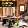 Erweitern Sie Ihr Ryobi 18V One+-System mit der bürstenlosen 8-1/4-Zoll-Tischkreissäge Ryobi 18V One+ HP. Die One+ HP-Technologie kombiniert einen leistungsstarken bürstenlosen Motor, fortschrittliche Elektronik und hohe Hochleistungs-Lithium-Ionen-Akkus für kabelgebundene Schneidleistung mit bis zu 4.500 U/min für kontrollierte und präzise Schnitte. Diese Tischkreissäge verfügt über eine Längsschnittkapazität von 12 Zoll rechts vom Sägeblatt und kann bis zu 240 Fuß pro Ladung auftrennen , bei Verwendung der (2) mitgelieferten 4-Ah-Hochleistungsbatterien. Zu den weiteren Merkmalen gehören ein verstellbarer, selbstausrichtender Materialanschlag, eine Höhenverstellung des Sägeblatts mit Zahnstange und Ritzel zur Gewährleistung einer präzisen Tiefenkontrolle sowie ein Stahlrahmen, der für zusätzliche Haltbarkeit und Festigkeit sorgt. Genießen Sie außerdem den Komfort der integrierten Bordaufbewahrung für sämtliches Zubehör. das bürstetFür die Tischkreissäge von Ryobi gilt eine 3-jährige Herstellergarantie und sie umfasst die bürstenlose 18-V-One+HP-Tischkreissäge mit 8-1/4 Zoll, einen Schiebestock, eine Sägeblattschutzbaugruppe mit Rückschlagsperrklinken, ein Sägeblatt mit Hartmetallspitze, einen Parallelanschlag und eine Gehrung Messgerät, Klingenschlüssel, (2) 18-V-4-Ah-Hochleistungsbatterien, Ladegerät und Bedienungsanleitungen.