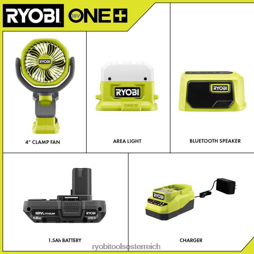 Erweitern Sie Ihr Ryobi 18V One+ System mit dem 18V One+ Compact Camper’s Kit. Die kabellose 18-V-LED-Kompaktflächenleuchte One+ ist die perfekte Ergänzung für jeden erweiterten Einsatzbedarf. Die drei Lichteinstellungen und die integrierten doppelten Trageschlaufen ermöglichen einen einfachen Transport. Dieser kabellose 18-V-One+-Kompaktlautsprecher von Ryobi kombiniert innovative Elektronik mit der kompaktesten Größe der Branche. Unsere intelligente Verstärkertechnologie liefert klaren, klaren Klang bei jeder Lautstärke. Dieser Lautsprecher verfügt über eine für seine Größe unübertroffene Leistungsfähigkeit, mit einer Bluetooth-Reichweite von 75 Fuß und einer Laufzeit von über 20 Stunden mit einem Ryobi 18 V One+ 2 Ah Lithium-Akku. Dieser 18-V-Klemmventilator ist das Nonplusultra in Sachen Mobilität. Es bietet nicht nur kabellosen Strom, sondern kann auch an Materialien mit einer Dicke von bis zu 1 1/2 Zoll klemmen, inklRohre und 2-by-Schnittholz sorgen für optimale Vielseitigkeit auf der Baustelle oder zu Hause. Das Beste daran ist, dass es Teil des Ryobi One+-Systems mit über 280 kabellosen Produkten ist, die alle mit derselben Batterieplattform funktionieren. Für dieses 18-V-One+-Kompaktcamper-Kit gilt die 3-jährige Herstellergarantie von Ryobi. Es umfasst (1) Pad02 18V One+-Kompaktlautsprecher, (1) PCF02 18V-One+ 4-Zoll-Klemmlautsprecher, (1) P796 18V-One+-Compact-Flächenleuchte, (1 ) pbp002 18 V 1+ 1,5 Ah Lithiumbatterie, Ladegerät und Bedienungsanleitungen.