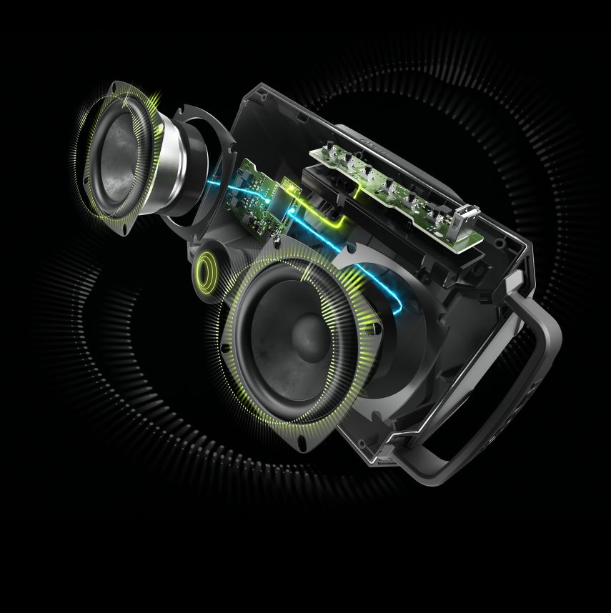 - Zwei 3-Zoll-Lautsprecher für kraftvollen, satten Klang