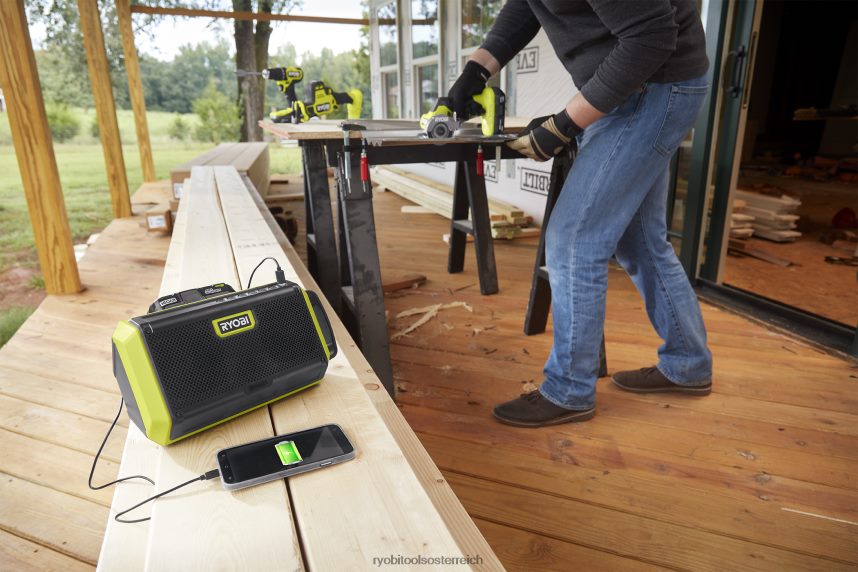 Dieser Ryobi 18V One+-Lautsprecher mit Bluetooth-Funktechnologie ist eine bahnbrechende Ergänzung Ihrer One+-Sammlung. Unsere neue intelligente Verstärkertechnologie liefert kraftvollen, klaren Klang bei jeder Lautstärke, mit 8,5-mal mehr Klarheit als der P746. Mit einer Bluetooth-Reichweite von 125 Fuß und einer Laufzeit von über 10 Stunden mit einem Ryobi 18V One+ 4,0 Ah-Akku ist dieser Lautsprecher der perfekte Partner, der Sie bei jedem Job unterstützt. Mit dem integrierten Griff können Sie kräftigen Sound überallhin mitnehmen. Dieser Lautsprecher ist außerdem mit einem 2,1-Ampere-USB-Ladeanschluss ausgestattet, über den Sie Ihr Telefon oder Tablet während der Arbeit aufladen können. Sprachansagen zeigen das Ein-/Ausschalten und die Bluetooth-Verbindung an, um die Bedienung dieses Lautsprechers einfacher als je zuvor zu machen. Für diesen Lautsprecher gilt die 3-jährige Herstellergarantie von Ryobi. Im Lieferumfang sind der Lautsprecher Pad01 18V One+ und die Bedienungsanleitung enthalten. BattLadegerät und Ladegerät sind separat erhältlich.