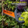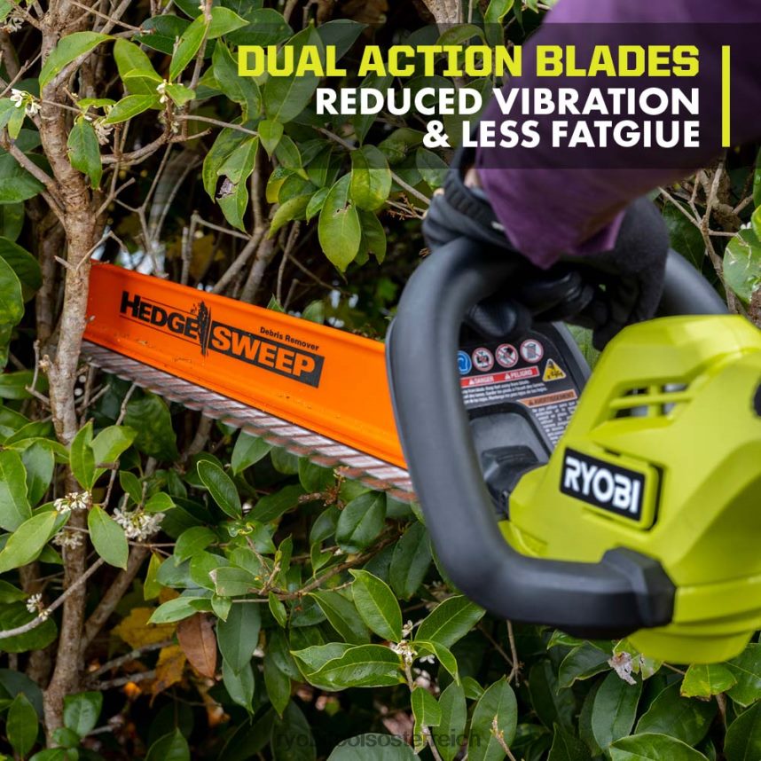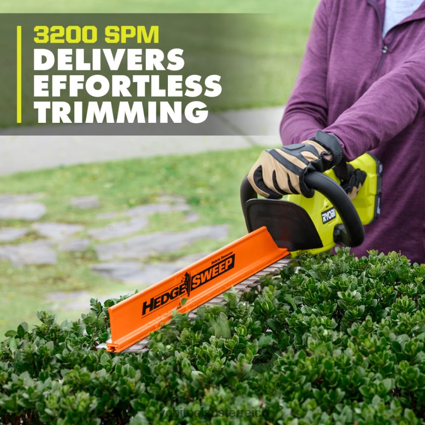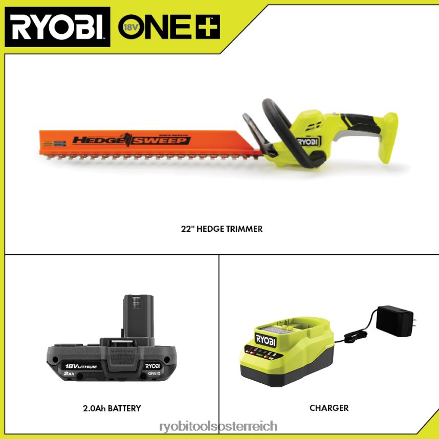 Erweitern Sie Ihr Ryobi 18V One+ System mit dem 18V One+ 22” Heckenscheren-Kit. Der leistungsstarke Motor sorgt mit 3.200 Hüben pro Minute für müheloses Hecken-, Strauch- und Strauchschneiden. Genießen Sie bis zu 21 Minuten Laufzeit mit dem mitgelieferten 18-V-2-Ah-Akku. Bewältigen Sie problemlos dicke Hecken und Äste mit 22-Zoll-Klingen und einer Schnittkapazität von 3/4 Zoll. Erleben Sie maximale Leistung mit nur einem Druck auf den Abzug, ohne lästiges Gas oder Kabel. Mit dem Heckenkehr-Rückstandentferner können Sie das Schnittgut beim Trimmen ganz einfach entfernen. Mit den Dual-Action-Messern können Sie mit weniger Vibrationen und weniger Ermüdung durch Hecken rasen. Das Beste ist, dass es Teil des Ryobi One+-Systems ist – jede 18-V-One+-Batterie funktioniert mit jedem 18-V-One+-Produkt. Für die Heckenschere und den Akku gilt eine Herstellergarantie von 3 JahrenGarantie. Dieses Kit enthält die Heckenschere P2609 (18 V, 22 Zoll), den Akku PBP006 (18 V, 2 Ah), das Ladegerät PCG002 (18 V), einen Heckenkehr-Schmutzentferner, eine Scheide und Bedienungsanleitungen.