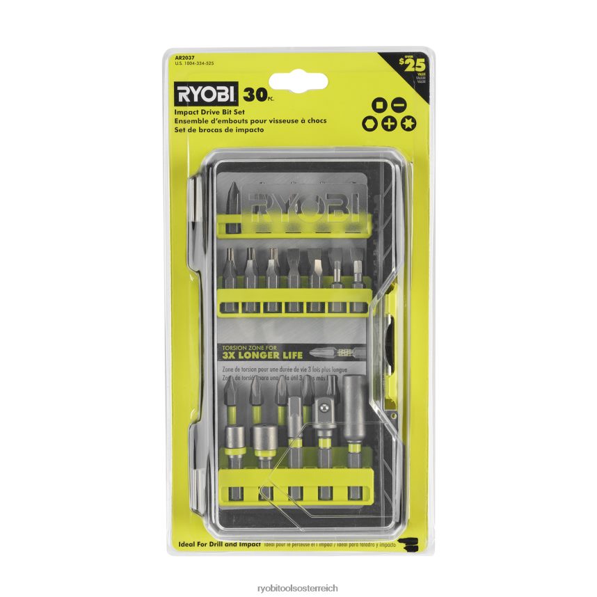 Ryobi Schlagschrauber-Bits sind so konstruiert, dass sie den harten Anforderungen standhalten, die mit der Verwendung eines Schlagschraubers einhergehen. Die 2-Zoll-Bits verfügen über eine Torsionszone, die so konstruiert ist, dass sie das hohe Drehmoment absorbiert, das der Bit bei vielen Fahranwendungen aufnimmt. Dieses 30-teilige Set bietet eine Vielzahl von Steckschlüsseln, Kreuzschlitz-Bits und Bithaltern, die alle in einer Standard-Bohrmaschine oder einem Schlagschrauber verwendet werden können. Der mitgelieferte Koffer ist kompakt und modular, sodass die Bithalter entfernt oder neu angeordnet werden können. Dies ermöglicht eine vollständige Anpassung der Zubehörsätze.