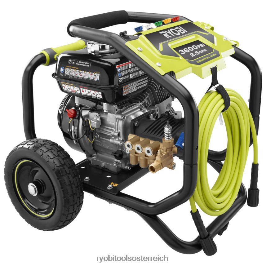Der Ryobi 3600 psi Hochdruckreiniger ist mit einem leistungsstarken Honda GX200-Motor für den gewerblichen Einsatz ausgestattet, um Ihre anspruchsvollsten Reinigungsaufgaben zu meistern. Die professionelle Triplex-Pumpe mit Messingkopf liefert 2,5 GPM und eine einstellbare Drossel ermöglicht es Ihnen, den Druck nach Ihren Wünschen einzustellen – ideal für jede Reinigungsaufgabe. Der 35 Fuß lange Hochdruckschlauch erweitert Ihre Reichweite, sodass Sie jeden Bereich problemlos erreichen können, und der Zusatzhandgriff erhöht den Komfort beim Reinigen. Dank der integrierten Zubehöraufbewahrung können Sie die Düsen bei Bedarf einfach und bequem austauschen. Dieser Hochdruckreiniger verfügt über große, plattenfreie 10-Zoll-Räder, die einen einfachen Transport ermöglichen, und einen umkehrbaren Griff für eine kompakte Lagerung, wenn die Arbeit erledigt ist. Für den Hochdruckreiniger Ryobi 3600 psi Honda GX200 gilt eine beeindruckende 5-Jahres-Garantie auf das Gerät und 3 Jahre auf den Motor.