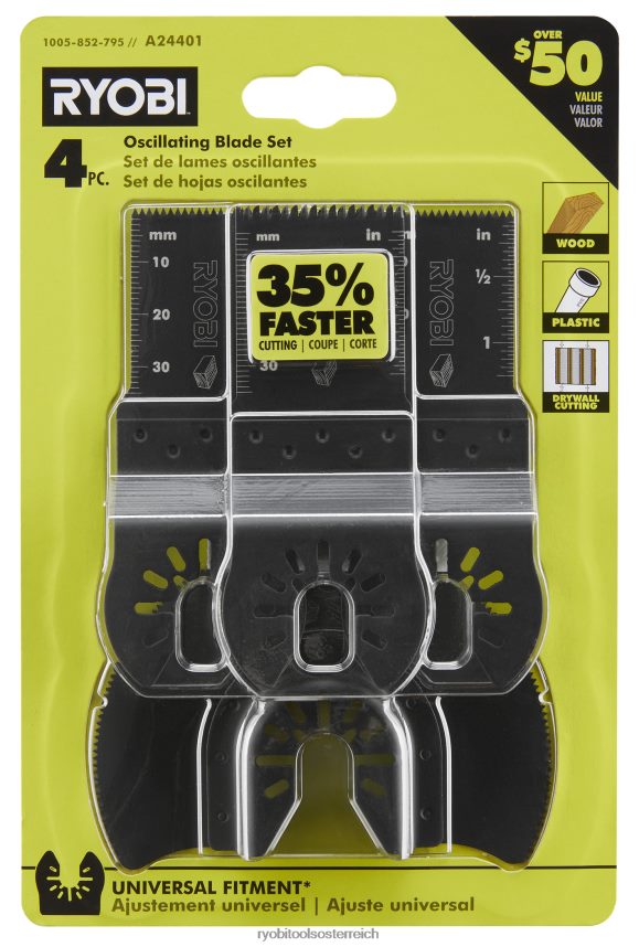 RYOBI 4 Stk. Oszillierender Multitool-Klingensatz aus Holz Zubehör 6V8HV6729