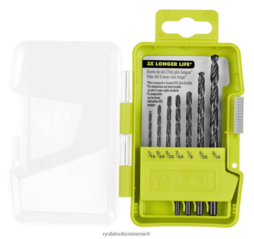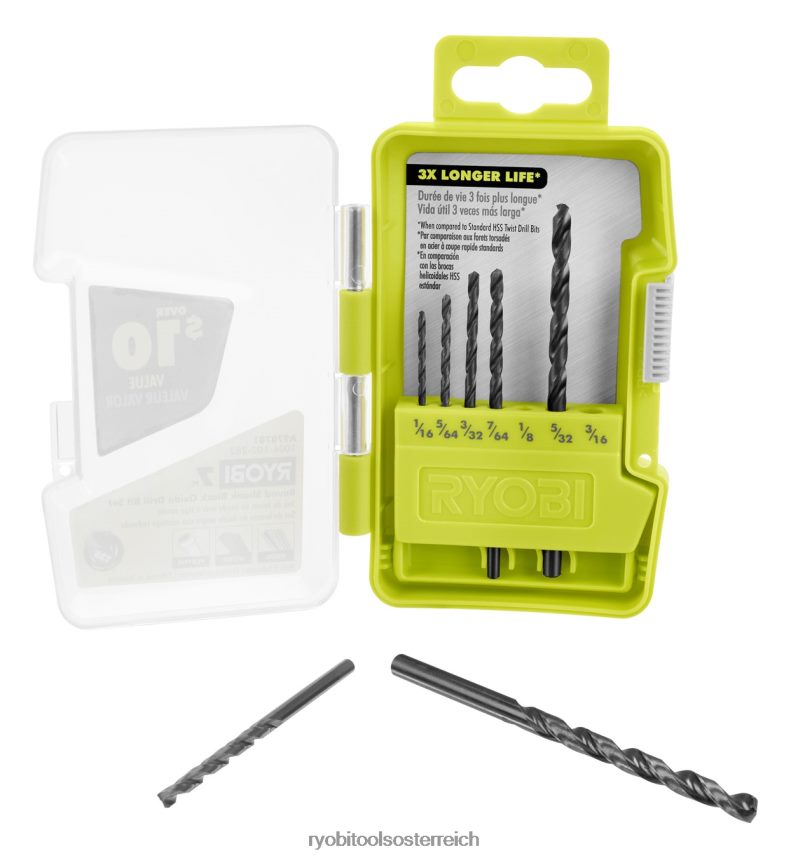 Ryobi stellt das 7-teilige Rundschaft-Bohrerset aus schwarzem Oxid vor. Dieses Sortiment an Bohrern eignet sich perfekt für Materialien wie Holz-, Metall- und Kunststoffoberflächen. Dies ist eine perfekte kompakte Lösung für Ihre Projekte rund ums Haus. Die Bits bestehen aus Schnellarbeitsstahl mit einer schwarzen Oxidoberfläche, um eine überlegene Haltbarkeit und eine dreimal längere Lebensdauer zu bieten. Ein weiteres Merkmal dieser Bohrer ist die 135-Grad-Splitspitze, um bei Kontakt zu bohren und zu verhindern, dass Ihr Bohrer wandert. Die durchsichtige Gehäuseabdeckung sorgt für Sichtbarkeit und erleichtert den Zugriff. Dieses Sortiment umfasst Bits von 1/16 Zoll bis 3/16 Zoll für alle Ihre Heimwerkerbedürfnisse. Dieses Set enthält (1) 1/16″-Bohrer aus schwarzem Oxid, (1) 5/64″-Bohrer aus schwarzem Oxid, (1) 3/32″-Bohrer aus schwarzem Oxid, (1) 7/64″-Bohrer aus schwarzem Oxid , (1) 1/8″ schwarzes OxidBohrer, (1) 5/32″ schwarzer Oxidbohrer, (1) 3/16″ schwarzer Oxidbohrer.