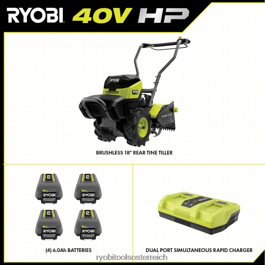 RYOBI Bürstenlose 40-V-PS-Fräse mit 18 hinteren Zinken draussen 6V8HV6449