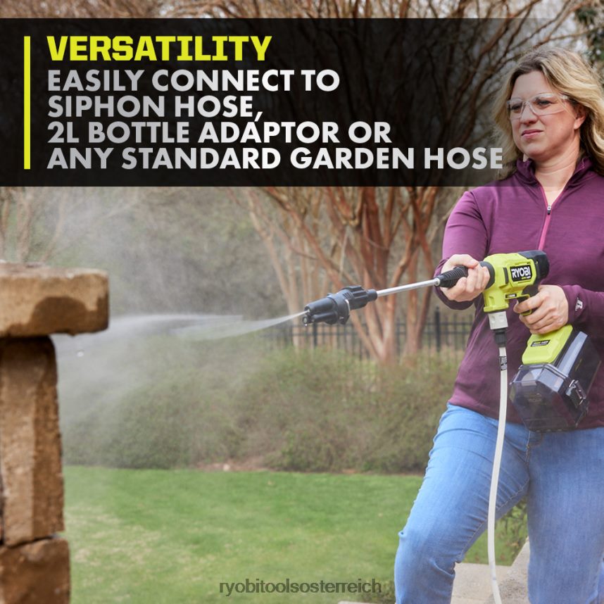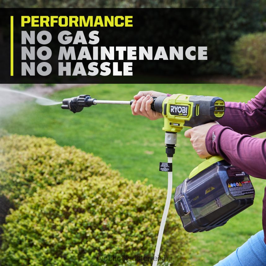 Verbessern Sie Ihr 40-V-System mit dem Ryobi 40-V-HP-EZ-Clean-Power-Reiniger-Kit. Die fortschrittliche 40-V-HP-Technologie nutzt einen bürstenlosen Motor, fortschrittliche Elektronik und eine Lithiumbatterie, um bis zu 600 psi zu liefern. Damit eignet sich dieser Kraftreiniger perfekt für die Reinigung von Autos, Fenstern, Booten, Terrassenmöbeln, Grills, Reifenrädern und anderen empfindlichen Anwendungen. Ganz gleich, ob Sie Pflanzen bewässern oder Schmutz und Schlammspritzer an einem Auto entfernen, mit den einstellbaren Leistungseinstellungen von 100–600 psi können Sie problemlos eine Vielzahl detaillierter und schneller Reinigungsanwendungen durchführen. Mit dem mitgelieferten 10-Fuß-Siphonschlauch können Sie für die mobile Reinigung ganz einfach Wasser aus einem Standard-Gartenschlauch oder einer anderen Frischwasserquelle entnehmen. Der Kraftreiniger ist nicht auf die Reinigung in Bereichen in der Nähe eines Schlauchs oder Gewässers beschränkt.Mit dem mitgelieferten Flaschenadapter können Sie auf einem Parkplatz, am Strand, im Wald oder anderswo reinigen. Der mitgelieferte 2-Ah-Lithium-Akku bietet eine Laufzeit von bis zu 16 Minuten bei hoher Leistung. Das Beste ist, dass es Teil des Ryobi 40-V-Systems ist, bei dem jede 40-V-Batterie mit jedem 40-V-Produkt funktioniert. Für diesen 40-V-PS-Kraftreiniger gilt die 5-Jahres-Herstellergarantie von Ryobi und für die mitgelieferte Batterie gilt die 3-Jahres-Batteriegarantie von Ryobi. Dieses Kit enthält den Kraftreiniger RY124050, den Akku OP40204 40 V 2,0 Ah, das Ladegerät OP404, einen Metallsprühstab, einen 20-Fuß-Siphonschlauch, eine 3-in-1-Düse, eine Aufbewahrungstasche, einen Hilfsgriff, einen Gartenschlauchadapter, einen Flaschenadapter und Bedienungsanleitungen.