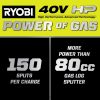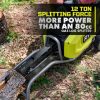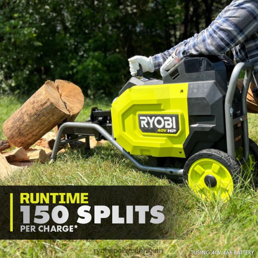 Steigen Sie mit dem bürstenlosen kinetischen Holzspalter-Kit Ryobi 40V HP in das Ryobi 40V-System ein. Die 40-V-HP-Technologie liefert 12 Tonnen Spaltkraft mit mehr Leistung als ein 80-cm3-Gas-Holzspalter und ist damit ein echter Gas-Ersatz. Die 40-V-HP-Technologie kombiniert einen bürstenlosen Motor, fortschrittliche Elektronik und Hochleistungs-Lithium-Technologie, um mehr Leistung, längere Laufzeit und längere Haltbarkeit zu bieten. Dieser Holzspalter kann Harthölzer wie Weißeiche, Roteiche und Hickory spalten. Sparen Sie Zeit mit dem kinetischen Design, das eine schnelle Zykluszeit von 2 Sekunden und eine 10-mal schnellere Spaltung ermöglicht. Mit 150 Spaltungen pro Ladung eignet sich dieser kinetische Holzspalter perfekt zum Spalten gefällter oder umgestürzter Bäume in kleinere Brennholzstücke. Transportieren Sie den kinetischen Holzspalter ganz einfach mit dem Co. durch Ihren GartenBequeme Handgriffe und All-Terrain-Räder. Der robuste Stahlrahmen bewältigt selbst schwierigstes Gelände und lässt sich nach getaner Arbeit vertikal verstauen. Das Beste ist, dass es Teil des Ryobi 40-V-Systems ist, bei dem jede 40-V-Batterie mit jedem 40-V-Produkt funktioniert. Dieses bürstenlose kinetische 40-V-HP-Holzspalterset von Ryobi ist mit einer 5-jährigen Herstellergarantie auf das Werkzeug und einer 3-jährigen Herstellergarantie auf den Akku von Ryobi ausgestattet und umfasst den bürstenlosen kinetischen Holzspalter RY40704 40 V HP, die 40-V-4-Ah-Lithiumbatterie OP40404, das 40-V-Ladegerät OP404, den Keil, Scheide/Abdeckung, Räder, Hardware und Bedienungsanleitungen.