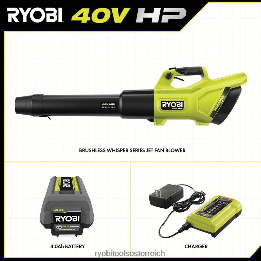 RYOBI Bürstenloses 40-V-PS-Gebläse der Whisper-Serie mit 600 cfm draussen 6V8HV6309