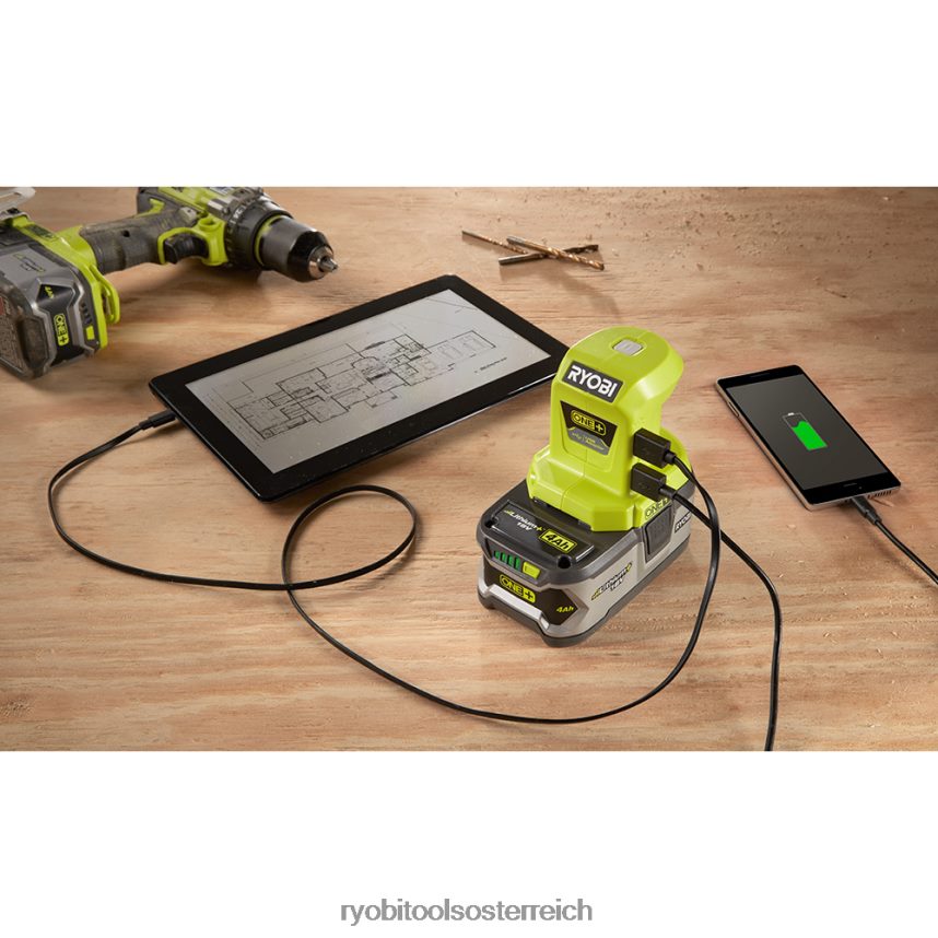 Die tragbare 18-V-Stromquelle One+ verfügt über zwei USB-Anschlüsse für bequemes und gleichzeitiges Laden. Es ist kompakt genug, um in kleinen Orten wie Werkzeugkästen und Taschen verstaut zu werden, und kann zum einfachen Transport einfach an der Oberseite aller 18-V-Akkus von Ryobi befestigt werden. Laden Sie Ihre Smart-Geräte bequem auf, ohne jemals eine Steckdose finden zu müssen. Test