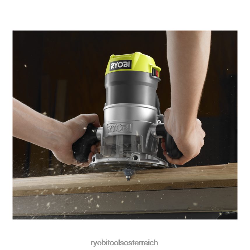 Der kabelgebundene Ryobi 1,5-PS-Router verfügt über einen leistungsstarken 8,5-Ampere-Kugellagermotor, der für lang anhaltende hohe Leistung sorgt. Die langlebige Basis besteht aus Aluminiumdruckguss und sorgt für Genauigkeit und Stabilität, während die ergonomischen Griffe eine komfortable Nutzung ermöglichen. Ein Mikroeinstellknopf verfügt über eine Nullrückstellung für eine genaue Tiefeneinstellung.