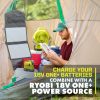 - koppeln Sie es mit ausgewählten Ryobi-Wechselrichtern, um 18-V-One+-Batterien aufzuladen.