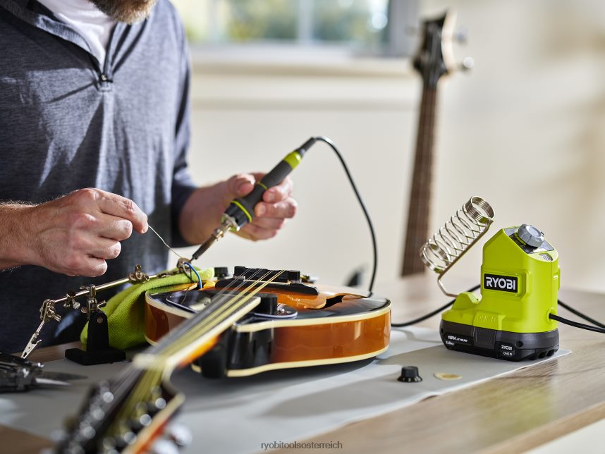 ryobi stellt den 18V One+ 120-Watt-Lötkolben vor. Dieser innovative Lötkolben bietet ultimative Mobilität, sodass Sie ihn direkt zu Ihrem Arbeitsplatz mitnehmen können. Es heizt sich in weniger als 90 Sekunden vollständig auf und verfügt über einen Bügeleisenhalter zur sicheren Aufbewahrung. Mit dem Temperaturregler können Sie Temperaturen zwischen 400 und 900 Grad einstellen und beibehalten. Die LED-Statusanzeige informiert Sie darüber, wann das Werkzeug aufheizt, wann es seine maximale Temperatur erreicht hat und wann es abkühlt. Außerdem verfügt es über eine Reichweite von 3 Fuß, die den Zugang zu Anwendungen in schwer zugänglichen Bereichen ermöglicht. Der Lötkolben verfügt über eine 3-jährige Herstellergarantie von Ryobi und umfasst eine Spitze mit feiner Spitze, eine Lötspule, einen 18-V-1+1,5-Ah-Lithium-Ionen-Akku, ein Ladegerät und eine Bedienungsanleitung.
