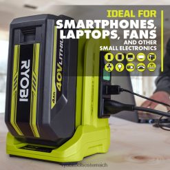 Erweitern Sie Ihr Ryobi One+-System mit der 150-Watt-18-V-Akku-Stromquelle und dem Ladegerät-Kit. Diese Stromquelle dient auch als 18-V-One+-Batterieladegerät und lädt eine 1,5-Ah-Batterie in nur einer Stunde auf. Über den USB-C-Anschluss des Geräts können Sie einen 18-V-One+-Akku zu Hause mit einem USB-Wandadapter, im Auto mit einem 12-V-USB-Autoadapter oder sogar draußen mit einem USB-C-kompatiblen Solarpanel aufladen. Betreiben oder laden Sie mehrere kleine elektronische Geräte wie Telefone, Tablets, Laptops, Ventilatoren und Lampen mit bis zu 150 Watt tragbarer Leistung. Mit dem mitgelieferten 18-V-1+2-Ah-Lithium-Akku können Sie Ihr Telefon mehr als dreimal aufladen. Es ist ideal für Situationen wie abgelegene Freizeitaktivitäten, Reisen, abgelegene Baustellen, Stromausfälle (zur Stromversorgung kleiner Elektronikgeräte) und das Aufladenunterwegs oder wann immer Sie eine zuverlässige Stromversorgung aus der Ferne benötigen. Sie können Ihren Bereich auch mit der integrierten LED-Arbeitsleuchte beleuchten. Diese Stromquelle und dieses Ladegerät verfügen über (2) USB-A-Schnellladeanschlüsse, (1) USB-C-Eingangs-/Ausgangsanschluss und (1) 120-Volt-Wechselstromsteckdose. Das Beste ist, dass es Teil des Ryobi One+-Systems ist – jede 18-V-One+-Batterie funktioniert mit jedem 18-V-One+-Produkt. Für die 150-Watt-Stromquelle und den mitgelieferten Akku gilt eine Herstellergarantie von 3 Jahren. Dieses Kit enthält den 150-Watt-18-V-Batteriewechselrichter und das Ladegerät Ryi150CBT, den 18-V-2-Ah-Lithium-Ionen-Akku PBP006, einen Wandstecker, ein USB-Ladekabel und Bedienungsanleitungen.