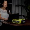 Erweitern Sie Ihr Ryobi One+-System mit dem 800-Watt-Kfz-Wechselrichter, einer der vielseitigsten Stromquellen von Ryobi. Dieser Wechselrichter nutzt 18-V-One+-Batterien, einen 12-V-Autostromanschluss oder eine 12-V-Autobatterie für bequeme, tragbare Stromversorgung. Versorgen oder laden Sie mehrere Geräte und Kleingeräte wie Telefone und Laptops mit dem 12-V-Autoadapter (bis zu 120 Watt Leistung), Ventilatoren und Lichter mit einem 18-V-One+-Lithium-Akku (bis zu 300 Watt Leistung) und sogar Fernseher und Slow Cooker über eine Autobatterie (bis zu 800 Watt Leistung). Laden Sie ein Telefon bis zu sechs Mal auf oder betreiben Sie sogar einen 32-Zoll-Fernseher bis zu zwei Stunden lang mit nur (1) 18-V-Lithiumbatterie mit einer Kapazität von 4 Ah. Es ist ideal für Situationen wie abgelegene Freizeitnutzung, Reisen, abgelegene Baustellen, Laden während der Fahrt, dicht auffahrende KamerasPing oder wann immer Sie eine zuverlässige, tragbare Stromversorgung benötigen. Überwachen Sie die Ausgangsleistung, die Stromquelle, die Eingangsspannung und den Batteriestand mit dem integrierten LCD-Bildschirm. Sie können Ihren Bereich auch mit der LED-Arbeitsleuchte beleuchten. Dieser Wechselrichter verfügt über eine Vielzahl von Steckdosen, darunter (2) USB-A-Anschlüsse, (1) USB-C-PD-Anschluss, (2) 120-Volt-Wechselstromsteckdosen und (1) 12-V-Autostromanschluss. Das Beste ist, dass es Teil des Ryobi One+-Systems ist – jede 18-V-One+-Batterie funktioniert mit jedem 18-V-One+-Produkt. Für den 800-Watt-Auto-Wechselrichter gilt eine dreijährige Herstellergarantie. Er umfasst den 800-Watt-Wechselrichter RYI8030A, Krokodilklemmen, einen 12-V-Autoadapter, (4) Montagehalterungen und eine Bedienungsanleitung. Akku und Ladegerät sind separat erhältlich.
