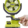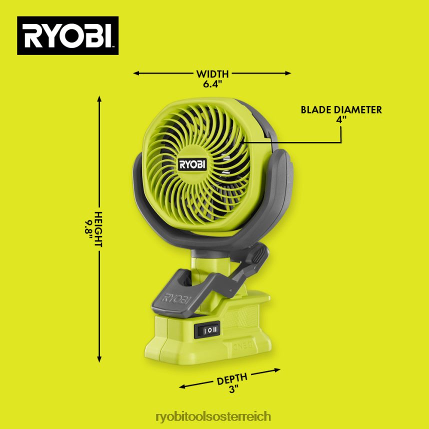 Erweitern Sie Ihr Ryobi 18V One+ System mit dem Ryobi 18V 4 Zoll Klemmventilator. Dieser 18-V-Klemmventilator ist das Nonplusultra in Sachen Mobilität. Es bietet nicht nur kabellosen Strom, sondern kann auch an Materialien mit einer Dicke von bis zu 1 1/2 Zoll klemmen, einschließlich Rohren und 2 x 2 x Holz, was optimale Vielseitigkeit auf der Baustelle oder zu Hause bietet. Mit 2 Geschwindigkeitseinstellungen und einem multidirektional rotierenden Kopf sorgt der Ryobi 18V 4 Zoll Klemmventilator für einen individuellen, persönlichen Luftstrom. Der Ryobi 18 V 4-Zoll-Klemmventilator verfügt über einen für seine Größe unübertroffenen Luftstrom von über 180 cfm. Mit über 40 Stunden Laufzeit bleiben Sie den ganzen Tag kühl. Für diesen 18-V-4-Zoll-Klemmlüfter gilt die 3-jährige Herstellergarantie von Ryobi. Akku und Ladegerät sind separat erhältlich.
