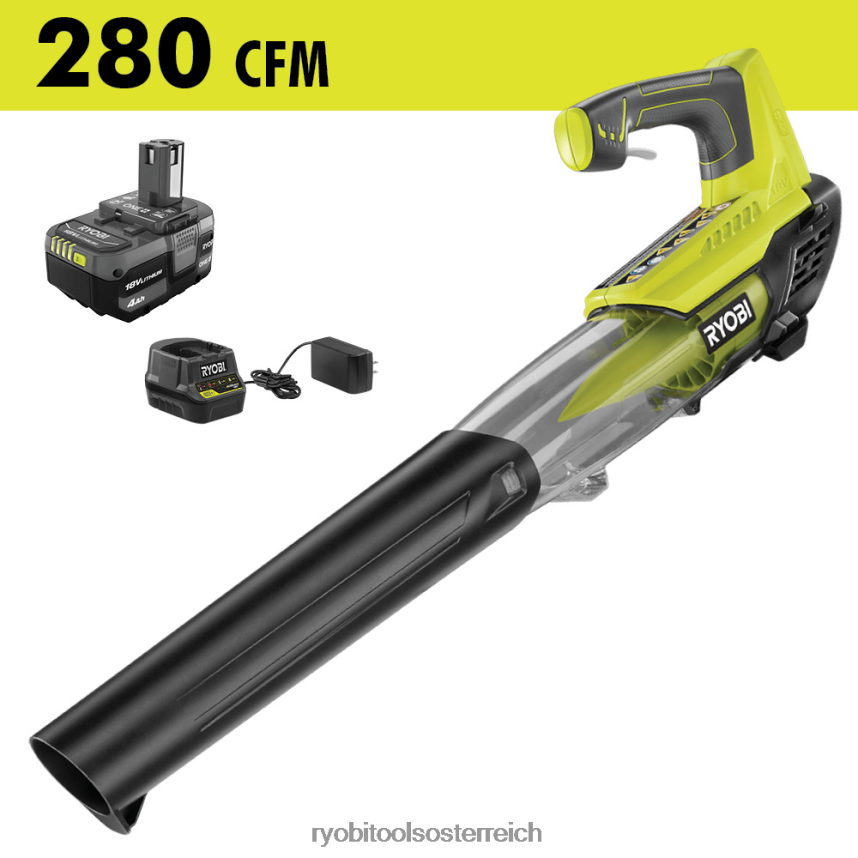Erweitern Sie Ihr Ryobi 18V One+-System mit dem 18V One+ 280 cfm-Gebläse-Kit. Der leistungsstarke Motor und das Strahlgebläsedesign dieses Gebläses liefern bis zu 280 cfm und 100 Meilen pro Stunde und eignen sich daher ideal zum Entfernen von leichtem Gartenschutt und harten Oberflächen wie Einfahrten und Gehwegen. Erleben Sie außergewöhnliche Leistung mit nur einem Knopfdruck, ohne lästiges Benzin oder Kabel. Genießen Sie bis zu 15 Minuten Laufzeit in der Höhe mit der mitgelieferten 18-V-1+4-Ah-Lithiumbatterie. Das kompakte und leichte Design reduziert Ermüdungserscheinungen und erhöht die Kontrolle, sodass dieses Gebläse für jedermann leicht zu handhaben ist. Ein Auslöser mit variabler Geschwindigkeit gibt Ihnen die ultimative Kontrolle in heiklen Bereichen, wie zum Beispiel beim Blasen von Blättern aus Mulchbeeten. Darüber hinaus lösen Sie hartnäckigen Schmutz und Blätter mit dem integrierten Schmutzschaber an der Spitze des Blasrohrs. am bestenSchließlich ist es Teil des Ryobi One+-Systems – jede 18-V-One+-Batterie funktioniert mit jedem 18-V-One+-Produkt. Für das Gebläse und den Akku gilt eine Herstellergarantie von 3 Jahren. Dieses Kit enthält das 18-V-Gebläse P21081, den 18-V-4-Ah-Akku PBP005, das 18-V-Ladegerät P118, das Blasrohr und Bedienungsanleitungen.