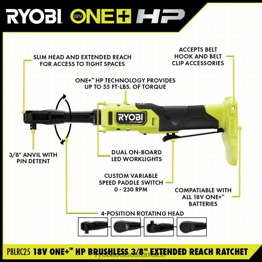 RYOBI 18 V One+ HP bürstenlose Ratsche mit 1/4 verlängerter Reichweite Elektrowerkzeuge 6V8HV658