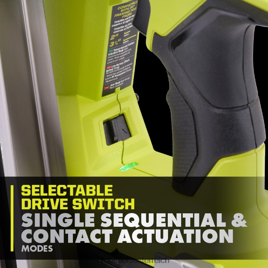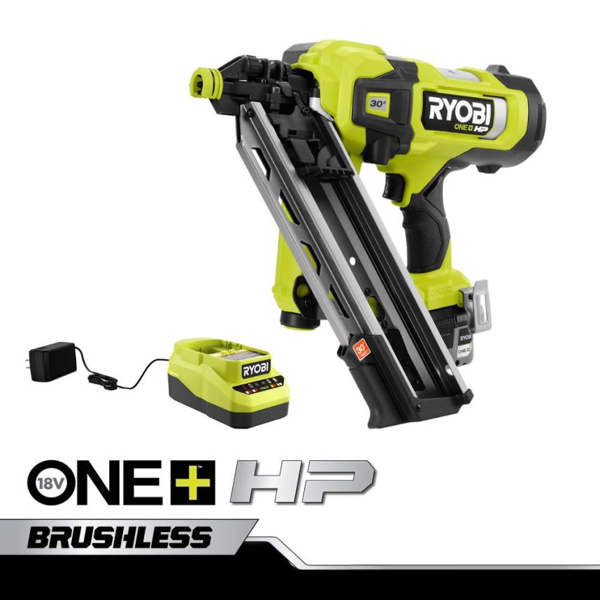 Erweitern Sie Ihr Ryobi 18V One+-System mit dem 18V One+ HP bürstenlosen Airstrike 30-Grad-Rahmennagler. Die one+ hp-Technologie sorgt durch bürstenlose Motoren, fortschrittliche Elektronik und leistungsstarke Lithium-Technologie für mehr Leistung, Laufzeit, Haltbarkeit und Geschwindigkeit. Genießen Sie den Komfort der Airstrike-Technologie und machen Sie laute Kompressoren, sperrige Schläuche und teure Gaskartuschen überflüssig. Dieser kabellose Rahmennagler bietet sofortige Fahrgeschwindigkeit und die Möglichkeit, bis zu 750 Nägel pro Ladung mit einem 4-Ah-Hochleistungsakku zu schlagen. Mit dem wählbaren Antriebsschalter können Sie zwischen einzelnen sequentiellen und Kontaktbetätigungsmodi wählen, um entweder eine präzise oder eine schnelle, wiederholte Nagelplatzierung zu ermöglichen. Dieser Rahmennagler liefert die LeistungZum Versenken von bis zu 3-1/2 Zoll großen, abgeschnittenen Nägeln oder Vollkopfnägeln. Die werkzeuglose Einstellung der Einschlagtiefe stellt sicher, dass Sie die Nägel jedes Mal bündig einschlagen können, selbst in den dichtesten Materialien. Das integrierte Luftfüllventil Ermöglicht die Wartungsfreundlichkeit vor Ort, was zu kürzeren Ausfallzeiten für Sie und Ihr Team führt, und der integrierte Sparrenhaken ermöglicht eine sichere und einfache Lagerung bei der Arbeit. Für den 18 V One+ HP bürstenlosen Airestrike 30-Grad-Rahmennagler gilt eine dreijährige Herstellergarantie von Ryobi Dazu gehören der bürstenlose 18-V-One+-HP-Rahmennagler, der 18-V-One+-4-Ah-Lithium-Hochleistungsakku, das 18-V-One+-Ladegerät, der Sparrenhaken, der Gürtelhaken, der Inbusschlüssel, das nicht beschädigende Pad und die Bedienungsanleitung.