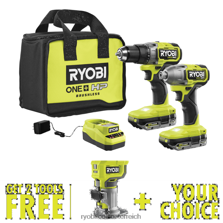 - umfasst: (1) 18 V One+ HP bürstenloser 1/2 Zoll Bohrschrauber, (1) 18 V One+ HP bürstenloser 1/4 Zoll Schlagschrauber, (2) 18 V One+ 2 Ah Lithium-Hochleistungsbatterien, Ladegerät und Werkzeugtasche