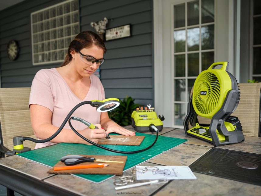Erweitern Sie Ihr Ryobi 18V One+-System mit dem 7,5-Zoll-Lüfter der Ryobi 18V One+ Hybrid-Whisper-Serie. Dieser Lüfter ist jetzt Teil unserer Whisper-Serie und verfügt über eine um 24 % höhere Luftgeschwindigkeit, um Sie kühl zu halten Es kommt auf die Anwendung an. Ausgestattet mit 3 Geschwindigkeitseinstellungen und einem um 160 Grad schwenkbaren Kopf kann der Luftstrom individuell angepasst werden, um die Luft dorthin zu leiten, wo sie benötigt wird. Unser neues kompaktes Design verfügt über einen integrierten Griff und mehrere Aufhängemöglichkeiten für maximale Tragbarkeit, Verwendung und Lagerung. Für diesen 18-V-One+-Hybrid-7,5-Zoll-Lüfter gilt die dreijährige Herstellergarantie von Ryobi. Er umfasst (1) PCL811 18-V-One+-Hybrid-7,5-Zoll-Lüfter und (1) Bedienungsanleitung. Akku und Ladegerät sind separat erhältlich.
