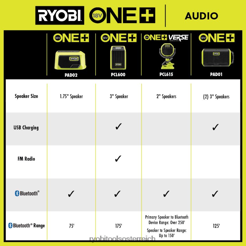 Dieser Ryobi 18V One+-Lautsprecher mit Bluetooth-Funktechnologie ist eine bahnbrechende Ergänzung Ihrer One+-Sammlung. Unsere neue intelligente Verstärkertechnologie liefert kraftvollen, klaren Klang bei jeder Lautstärke, mit 8,5-mal mehr Klarheit als der P746. Mit einer Bluetooth-Reichweite von 125 Fuß und einer Laufzeit von über 10 Stunden mit einem Ryobi 18V One+ 4,0 Ah-Akku ist dieser Lautsprecher der perfekte Partner, der Sie bei jedem Job unterstützt. Mit dem integrierten Griff können Sie kräftigen Sound überallhin mitnehmen. Dieser Lautsprecher ist außerdem mit einem 2,1-Ampere-USB-Ladeanschluss ausgestattet, über den Sie Ihr Telefon oder Tablet während der Arbeit aufladen können. Sprachansagen zeigen das Ein-/Ausschalten und die Bluetooth-Verbindung an, um die Bedienung dieses Lautsprechers einfacher als je zuvor zu machen. Für diesen Lautsprecher gilt die 3-jährige Herstellergarantie von Ryobi. Im Lieferumfang sind der Lautsprecher Pad01 18V One+ und die Bedienungsanleitung enthalten. BattLadegerät und Ladegerät sind separat erhältlich.