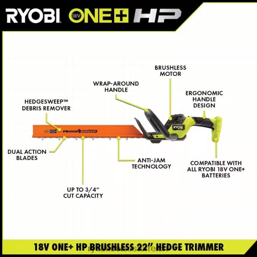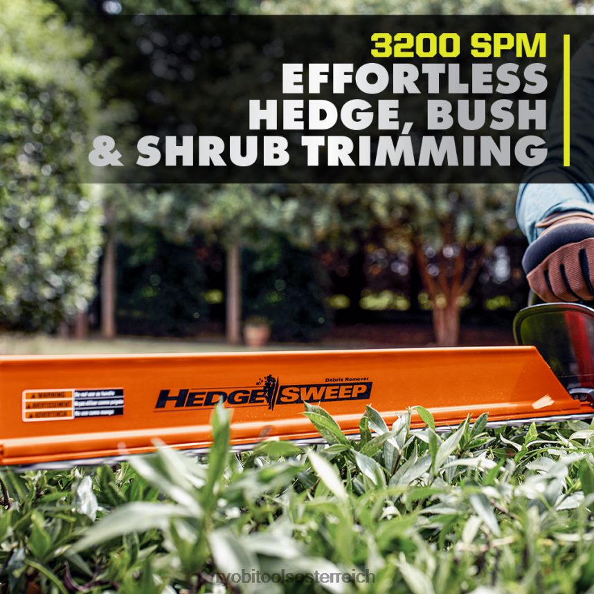 Erweitern Sie Ihr Ryobi 18V One+ System mit dem 18V One+ HP 22” Heckenscheren-Kit. Die 18-V-PS-Technologie kombiniert einen bürstenlosen Motor, fortschrittliche Elektronik und Hochleistungs-Lithium-Technologie, um 3.200 Hübe pro Minute für müheloses Hecken-, Busch- und Strauchschneiden zu liefern. Genießen Sie bis zu 25 Minuten Laufzeit mit der mitgelieferten 18-V-1+2-Ah-Lithiumbatterie. Bewältigen Sie mühelos dicke Hecken und Äste mit 22-Zoll-Klingen und einer beeindruckenden Schnittkapazität. Diese Heckenschere mit mehr als einer PS nutzt Anti-Blockier-Technologie, um zu verhindern, dass die Klingen selbst an den härtesten Ästen hängen bleiben. Erleben Sie außergewöhnliche Leistung mit nur einem Zug Auslöser, ohne lästiges Gas oder Kabel. Mit dem Heckenfeger-Rückstandentferner können Sie das Schnittgut beim Trimmen problemlos entfernen. Plus: Dual-Action-KlingenKraft durch Hecken mit reduzierter Vibration und weniger Ermüdung, wodurch die Gartenarbeit zum Kinderspiel wird. Das Beste ist, dass es Teil des Ryobi One+-Systems ist – jede 18-V-One+-Batterie funktioniert mit jedem 18-V-One+-Produkt. Für die Heckenschere und den Akku gilt eine Herstellergarantie von 3 Jahren. Dieses Kit enthält die 18-V-Heckenschere P2608, den 18-V-2-Ah-Akku PBP006, das 18-V-Ladegerät P118B, einen Heckenkehr-Schmutzentferner, eine Scheide und Bedienungsanleitungen.