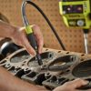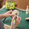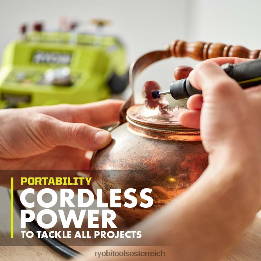 ryobi stellt die 18-V-One+-Rotationswerkzeugstation vor. Dieses Werkzeug bietet verbesserte Leistung mit einem variablen Geschwindigkeitsregler, der es dem Benutzer ermöglicht, zwischen 5.000 und 35.000 Nenndrehzahlen pro Minute zu wählen, um eine Vielzahl von Projekten durchzuführen. Diese rotierende Werkzeugstation ist außerdem die leiseste ihrer Klasse und eignet sich daher perfekt für den Einsatz in den meisten Arbeitsbereichen. Mit 35 mitgelieferten Zubehörteilen und integrierter Zubehöraufbewahrung bietet die rotierende Werkzeugstation Komfort und erfüllt gleichzeitig eine Reihe von Anwendungen. Das 36-Zoll-Stiftdesign mit flexiblem Schaft maximiert Präzision und Komfort. Dieses Werkzeug verfügt außerdem über die neue innovative Schnellwechsel-Spannzange mit 4-mal schnellerem Zubehörwechsel, die den Wechsel des Zubehörs schnell und einfach macht. Mit Gummifüßen zur Reduzierung des Verrutschens und integrierten Schlüssellöchern zum Aufhängen ist das 18-V-One+-Rotationswerkzeug einfach zu bedienenzu verwenden und einfach zu lagern. Dieses rotierende Werkzeug wird durch die 3-jährige Herstellergarantie von Ryobi abgesichert und umfasst einen 18-V-One+-2-Ah-Akku, ein 18-V-One+-Ladegerät, eine 36-Zoll-flexible Welle, 35 Schleif-/Schneid-/Schleif-/Polierzubehörteile, einen Aufbewahrungskoffer für Zubehör, einen Schraubenschlüssel und einen Benutzerhandbuch.