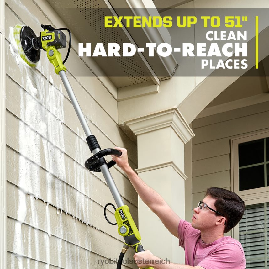Erweitern Sie Ihr Ryobi 18V One+-System mit dem 18V-Seifenspender-Teleskop-Schrubber-Kit. Nehmen Sie diesen motorisierten Schrubber und lassen Sie die Schwämme in der Garage, zusammen mit den Rückenschmerzen, die mit herkömmlichen, manuellen Reinigungsmethoden einhergehen. Die kabellose Tragbarkeit und das leichte Design eignen sich perfekt für die Reinigung unterwegs. Der Komfort des 18-V-Teleskopwäschers mit Seifenspender besteht darin, dass er alles kabellos erledigen kann. Sprühen Sie die mitgelieferte Ryobi-Seifenlösung präzise auf, schalten Sie den Schrubber ein und lassen Sie ihn die ganze Arbeit für Sie erledigen. Dieser verbesserte Teleskopschrubber bietet Ihnen ein müheloses Reinigungserlebnis mit Seifen- und Wasserspendertechnologie. Es ist mit über 25 Zubehörteilen für Sechskant- und Dreiecksverbinder kompatibel – von weichen Mikrofasern für eine schonende Reinigung bis hin zu weichen Mikrofaserng zu Schleifborsten zum Materialabtrag (separat erhältlich). Die mitgelieferte 6-Zoll-Bürste mit mittleren Borsten ist ideal zum Reinigen von Fliesen, Glasfaser, Verkleidungen und mehr. Mit dem in 6 Positionen schwenkbaren Kopf und der 51-Zoll-Teleskopstange können Sie schwer zugängliche Bereiche sowohl in der Höhe als auch in der Tiefe reinigen. Sie können beruhigt reinigen, da das Batteriegehäuse des Scheuersaugers die IPX7-Wasserbeständigkeit aufweist – das bedeutet, dass dieses Gerät 30 Minuten lang in bis zu 90 cm tiefes Wasser getaucht werden kann. Das Beste daran ist, dass es Teil des Ryobi 18V One+-Systems mit über 260 kabellosen Produkten ist, die alle mit derselben Batterieplattform funktionieren. Dieses 18-V-One+-Seifenspender-Teleskop-Schrubber-Set ist mit der 3-jährigen Herstellergarantie von Ryobi ausgestattet und umfasst einen 18-V-2-Ah-Lithium-Akku, ein Ladegerät, eine 6-Zoll-Bürste mit mittleren Borsten und 8 Unzen. Seifenlösung und Bedienungsanleitungen.