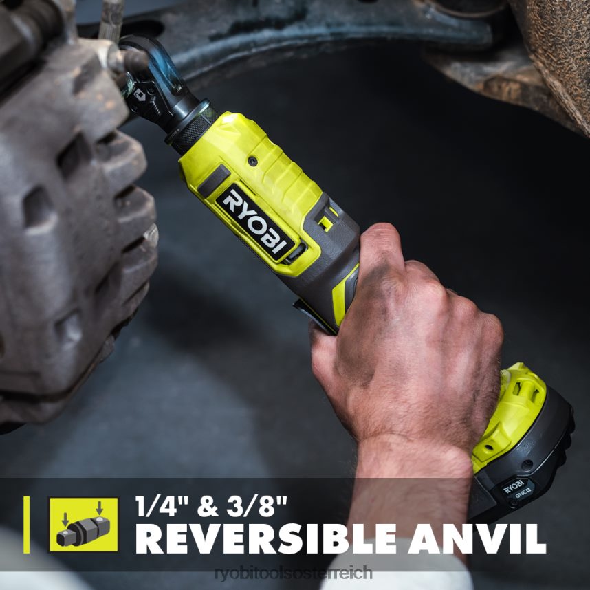 Erweitern Sie Ihr Ryobi 18V One+ System mit dem Ryobi 18V One+ Ratsche mit mehreren Größen. Bietet eine praktische und vielseitige Lösung, die eine vollständige Palette von Steckschlüsselgrößen nutzt, die mit 1/4-Zoll-, 3/8-Zoll- und 1/2-Zoll-Antrieben kompatibel sind. Darüber hinaus nimmt der 1/2-Zoll-Amboss 1/4-Zoll-Sechskant-Schraubendreher-Bits auf Maximale Vielseitigkeit. Der Größenwechsel ist so einfach wie das Verschieben des Entriegelungsriegels am Ratschenkopf, das Einsetzen der gewünschten Ambossgröße und das Erledigen der Arbeit. Mit einem Drehmoment von bis zu 35 ft-lbs. und einer Drehzahl von 260 U/min ist diese Ratsche ideal für Automobilanwendungen , Installationsprojekte und verschiedene Montage-/Wartungsanforderungen. Mit einem drehbaren Ratschenkopf mit 4 Positionen und einem Metall-Paddle-Abzug mit variabler Geschwindigkeit können Sie Ihre Anwendung erreichen und aus verschiedenen Griffen und Winkeln auf Ihren Abzug zugreifen. Das Dual-On-Board LED-Arbeitsscheinwerfer ilBeleuchten Sie Ihren Arbeitsplatz, um die Sichtbarkeit in schwach beleuchteten Bereichen zu gewährleisten. Teil des Ryobi One+-Systems – jede 18-V-One+-Batterie funktioniert mit jedem 18-V-One+-Produkt. Für diese 18V One+ Multi-Size-Ratsche gilt die dreijährige Herstellergarantie von Ryobi. Sie umfasst PCL280 18V One+ Multi-Size-Ratsche, umschaltbaren 1/4″- und 3/8″-Amboss, 1/2″-Amboss mit 1/4″-Sechskant Antriebs- und Bedienungsanleitungen. Akku und Ladegerät sind separat erhältlich.