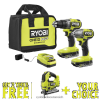 - umfasst: (1) 18 V One+ HP bürstenloser 1/2 Zoll Bohrschrauber, (1) 18 V One+ HP bürstenloser 1/4 Zoll Schlagschrauber, (2) 18 V One+ 2 Ah Lithium-Hochleistungsbatterien, Ladegerät und Werkzeugtasche