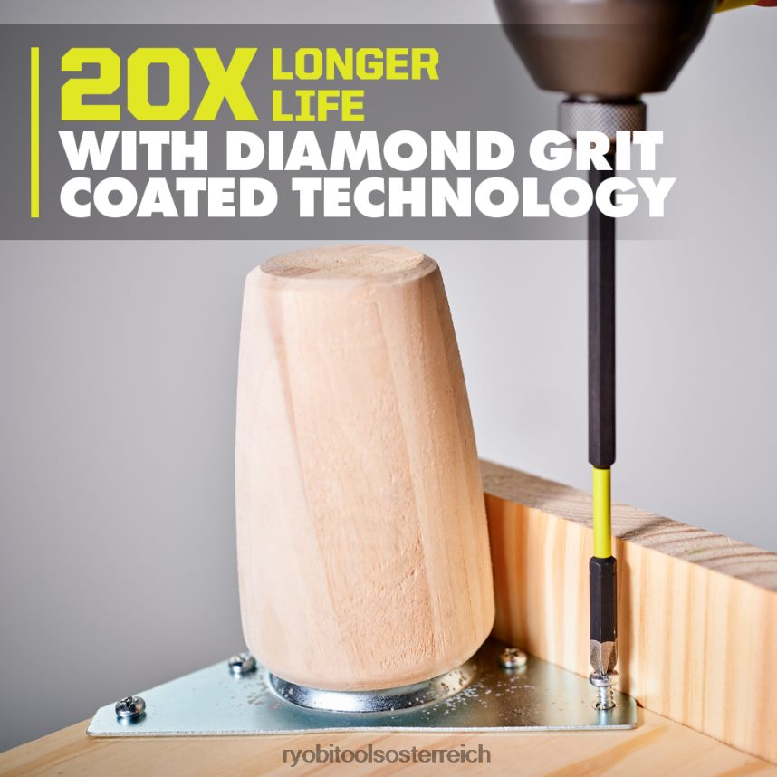 Verbessern Sie Ihr Fahrzubehör mit der diamantbeschichteten Technologie von Ryobi. der Ryobi 2 Stk. 6-Zoll-Schlagbohrbits mit Diamantkörnung verfügen über eine gehärtete Spitze für verbesserte Haltbarkeit und eine 20-mal längere Lebensdauer. Die mit Diamantkörnung beschichtete Technologie hält das Befestigungselement außerdem fest mit 2-mal stärkerem Halt und erhöhter Kontrolle, selbst bei größerer Reichweite. Die verbesserte Passform greift das Befestigungselement, während Beim Eindrehen werden die Schrauben weniger abgenutzt. Diese Bits sind schlagfest und verfügen über einen 1/4-Zoll-Sechskantschaft, sodass sie direkt in Ihr Bohrfutter oder Ihren Schlagschrauber passen. Die 6-Zoll-Bits bieten zusätzliche Länge für schwer zugängliche Anwendungen. Dieses Set ist eine perfekte Lösung für alle Heimwerker und Profis, die sich weniger Ärger mit dem Schraubendrehen und eine optimale Kontrolle vor dem Eindrehen wünschen. Ergänzen Sie Ihr WerkzeugKollektion mit Premium-Ryobi-Accessoires. die 2 Stk. 6-Zoll-Schlagschrauber mit Diamantkörnung sind mit Standardbohrmaschinen und Schlagschraubern kompatibel und umfassen (2) 6-Zoll-Diamant-PH2-Schlagschrauber-Bits.