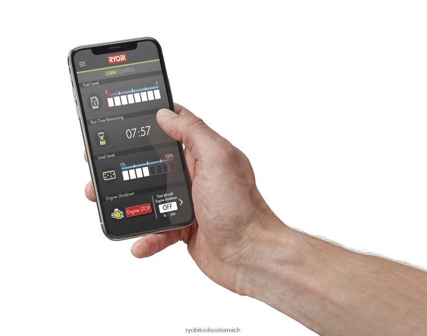 - Gencontrol-App und integrierter LCD-Bildschirm überwachen und zeigen Stromverbrauch, Kraftstoffstand und verbleibende Laufzeit an
