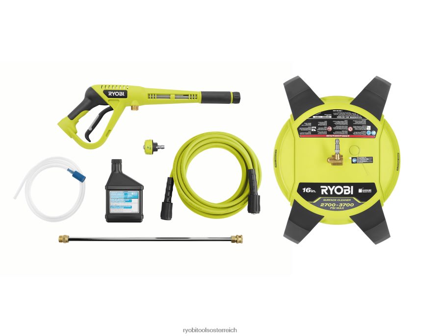 Der Ryobi 3400 psi Hochdruckreiniger mit 16-Zoll-Oberflächenreiniger ist die perfekte Kombination, um die schwierigsten Arbeiten schnell zu erledigen. Der leistungsstarke Honda GC190-Motor liefert eine Kraft von 3400 psi, um Schmutz, Öl und andere hartnäckige Flecken wegzublasen. Der robuste Schubkarrenrahmen und die 10-Zoll-Räder erleichtern den Transport. Dieser Hochdruckreiniger verfügt über einen umkehrbaren Griff, der die Aufbewahrung bequemer und kompakter macht. Der 50 Fuß lange, nicht beschädigende Hochdruckschlauch bietet eine größere Reichweite für den Zugang auch zu schwer zu reinigenden Bereichen. Für zusätzlichen Komfort ist es mit einer 5-in-1-Schnellwechseldüse ausgestattet, mit der Sie die Sprühmuster schnell wechseln können. Verwenden Sie zum Reinigen harter Oberflächen wie Einfahrten, Terrassen und Gehwege den 16-Zoll-Radoberflächenreiniger. Dieses zeitsparende Zubehör reinigt bis zu viermal schneller als eine Standarddüse, mit rotierenden Düsen, die Ihnen einen großen, streifenfreien Reinigungsweg bieten. Für den Gas-Hochdruckreiniger Ryobi 3400 psi gilt eine beschränkte Garantie von drei Jahreny und eine 2-jährige Motorgarantie.