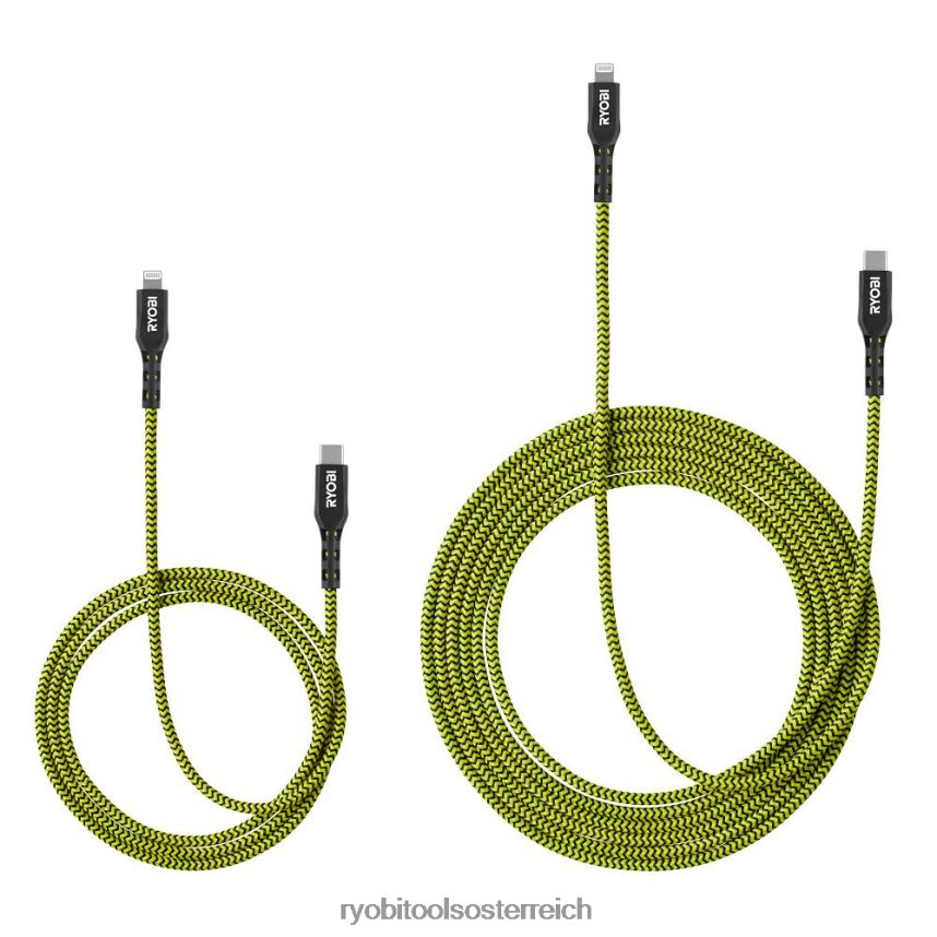Halten Sie Ihre Geräte mit den neuen Ryobi USB-Ladekabeln mit Nylongeflecht aufgeladen. Diese 4′- und 10′-Universalkabel bieten eine USB-C-zu-Lightning-Verbindung. Die Premium-Geflechthülle aus Nylon, der eisenbeschichtete Stecker und die langlebige Zugentlastung sorgen für die Sicherheit, alltäglichen Abnutzungserscheinungen standzuhalten, und machen diese Kabel ideal für den Einsatz in einer Vielzahl von Umgebungen, sei es zu Hause, im Auto, auf der Baustelle oder auf der Baustelle draußen. Sie können sich darauf verlassen, dass Ihre Kabel MFI-zertifiziert sind und so die Kompatibilität und sichere Möglichkeit zum Laden von Apple-Produkten und Mobilgeräten gewährleisten. Die Ryobi-USB-C-auf-Lightning-Kabel eignen sich perfekt für die Verwendung mit Ihren Ryobi-Werkzeugen und anderen zahlreichen Geräten auf dem Markt. Für diese Kabel gilt eine 3-jährige Herstellergarantie und sie umfassen (1) 4′ USB-C-zu-LightninG-Kabel und (1) 10′ USB-C-auf-Lightning-Kabel.