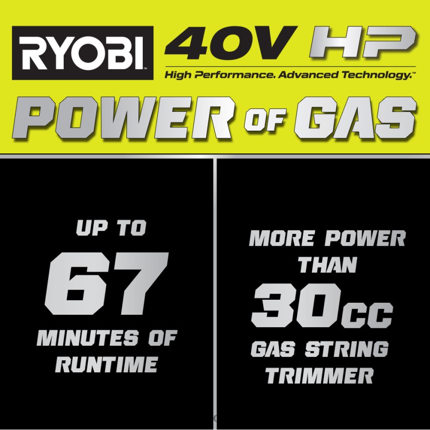 - 40-V-HP-Technologie liefert mehr Leistung als ein 30-cm3-Gas-Trimmer