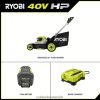 Der Ryobi 40 V HP bürstenlose 21-Zoll-Akku-Rasenmäher mit mehreren Klingen liefert die Kraft von Benzin mit dem Komfort von Akku. Der Premium HP bürstenlos Der Motor sorgt für mehr Leistung, längere Laufzeit und eine längere Lebensdauer des Motors. Er startet mit nur einem Knopfdruck, ohne den Aufwand von Benzin, Öl oder Wartung. Dieser Mäher ist ideal für Höfe bis zu 1/2 Acre und verfügt über zwei Rasenmäher Aktive Batterieanschlüsse und eine 40-Volt-7,5-Ah-Batterie, die eine Laufzeit von bis zu 50 Minuten bietet. Das Cross-Cut-Mehrfachklingensystem bietet zwei Klingen für überlegene Schneidleistung oder eine einzelne Klinge für längere Laufzeit. Das robuste 21-Zoll-Deck ist leicht Es ist korrosionsbeständig und verfügt über eine lebenslange Garantie. Der Mäher verfügt über ein großes 10-Zoll-Hochraddesign für einfache Manövrierfähigkeit und das Mähwerk verfügt über 7-PPositions-Einpunkt-Höhenverstellung zur einfachen Auswahl Ihrer Grashöhe zwischen 1,5 und 4 Zoll. Bei den 3-in-1-Mähfunktionen können Sie zwischen Fangsack-, Mulch- und Seitenauswurffunktionen wählen. Mit der einfachen Hebefunktion zum Entfernen des Grasfangsacks können Sie den Grasfangsack schnell und einfach entleeren, und die Aluminiumgriffe lassen sich mit nur einem Tastendruck zusammenklappen, um eine kompakte, vertikale Lagerung zu ermöglichen. Dieser Mäher verfügt über ein 40-V-Schnellladegerät, mit dem Sie Ihre Akkus viermal schneller aufladen können als mit dem Standardladegerät. Dieser Mäher wird mit Stolz in den USA aus globalen Materialien hergestellt und verfügt über eine 5-jährige Werkzeuggarantie.