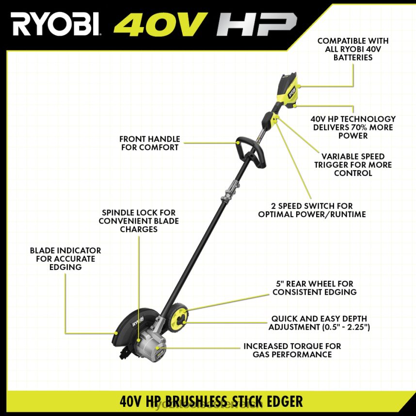 RYOBI 40 V PS bürstenloser Kantenschneider mit 8 Stielen draussen 6V8HV6269