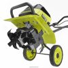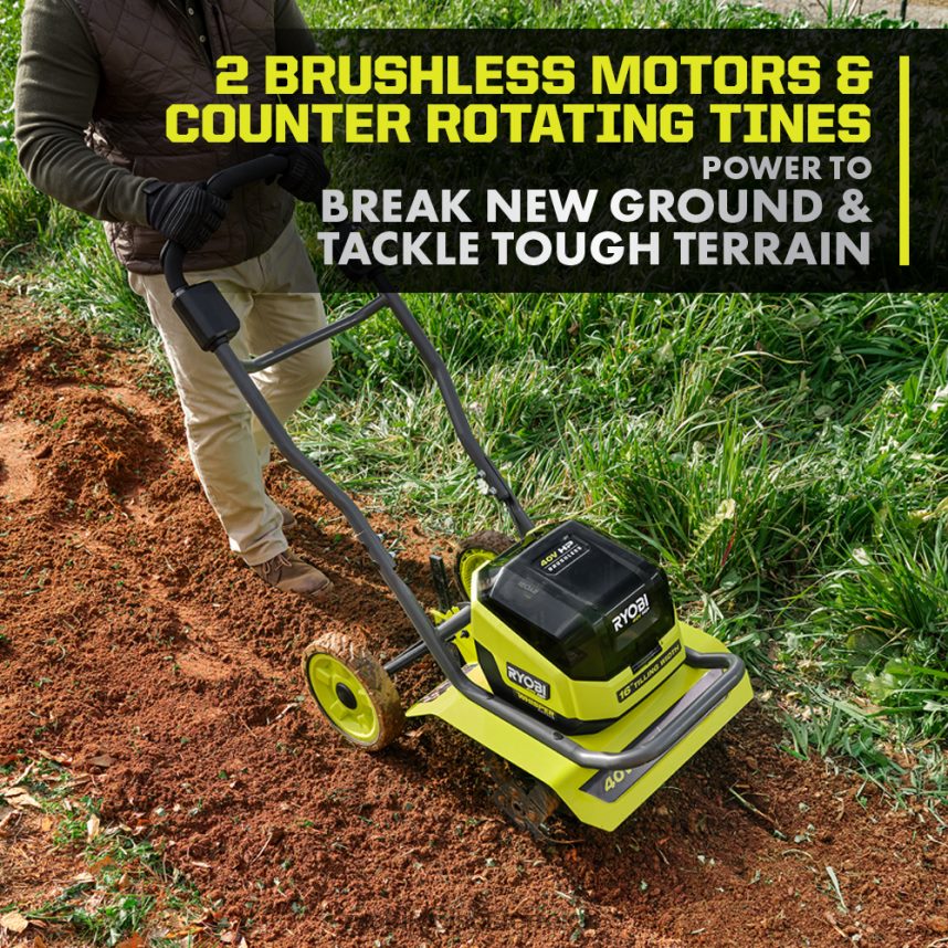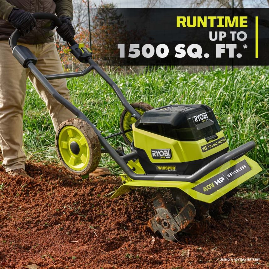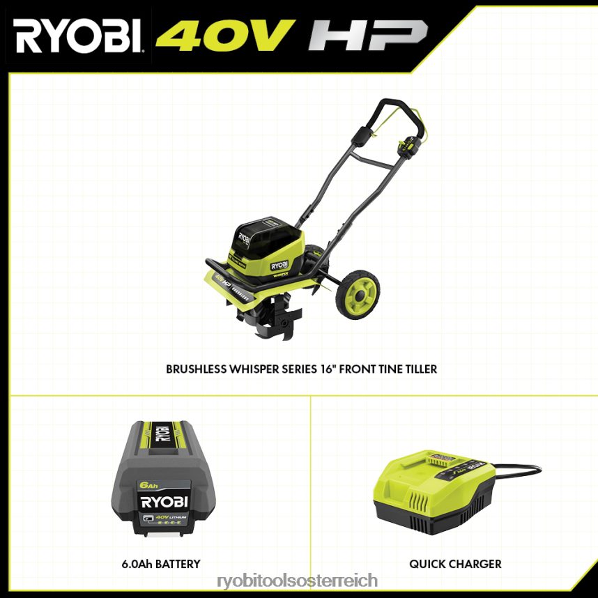 Steigen Sie mit dem bürstenlosen Ryobi 40V HP 16-Zoll-Frontzinken-Fräsensatz in das Ryobi 40V-System ein. Die 40V-HP-Technologie liefert mehr Leistung als ein 208-cm³-Benzinmotor Damit ist diese Motorhacke ein echter Benzin-Ersatz. Die 40-V-PS-Technologie kombiniert einen bürstenlosen Motor, fortschrittliche Elektronik und Hochleistungs-Lithium-Technologie, um die nötige Leistung zu liefern, um neue Wege zu beschreiten und schwieriges Gelände zu bewältigen. Bis zu 1.500 Quadratfuß pro Ladung, Äquivalent zur Bodenbearbeitung eines Tennisplatzes, wodurch sich diese Motorhacke mit Frontzinken ideal für Gärten und Blumenbeete eignet. Sie verfügt über eine von 11 bis 16 Zoll einstellbare Bodenbearbeitungsbreite und eine Bodenbearbeitungstiefe von 8 Zoll. Als Teil der Whisper-Serie ist diese Motorhacke speziell entwickelt Es ist 94 % leiser als Benzin, sodass Sie zu jeder Tageszeit arbeiten können, ohne andere zu stören. Für eine tiefere Bodenbearbeitung und mehr KomfortFür den Transport nutzen Sie die 3-Positionen-Radachse und lassen sich mit den robusten Stahlgriffen und 10-Zoll-Rädern leicht manövrieren. Diese Motorhacke verfügt außerdem über einen Frontbügel für eine gleichmäßige Gewichtsverteilung während der Bodenbearbeitung. Laden Sie Ihren 40-V-6-Ah-Lithium-Akku mit dem mitgelieferten 40-V-Schnellladegerät in weniger als 90 Minuten auf. Das Beste ist, dass es Teil des Ryobi 40-V-Systems ist, bei dem jede 40-V-Batterie mit jedem 40-V-Produkt funktioniert. Für dieses Ryobi 40 V HP bürstenlose 16-Zoll-Frontzinken-Fräsenset gilt die 5-jährige Ryobi-Herstellergarantie auf das Werkzeug und 3 Jahre Herstellergarantie auf die Batterie. Es umfasst die 40 V HP bürstenlose 16-Zoll-Frontzinkenfräse Ry40703, die 40-V-6-Ah-Lithiumbatterie OP40605 und die schnelle 40-V-Fassung OP408 Ladegerät, robuste Stahlzinken, Räder, Montagezubehör und Bedienungsanleitungen.