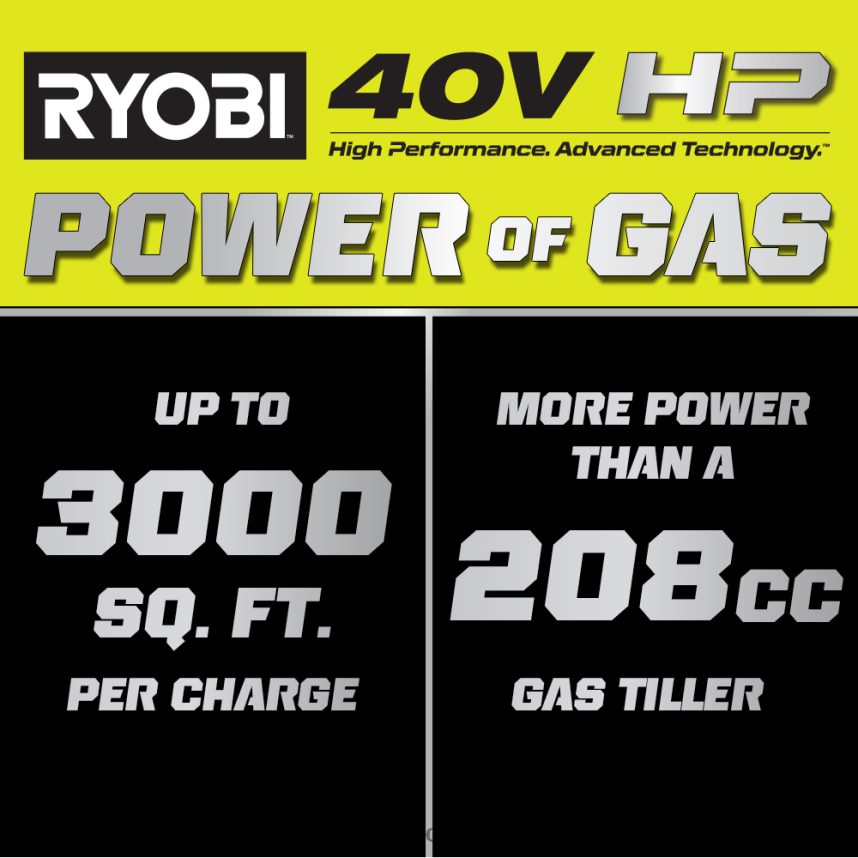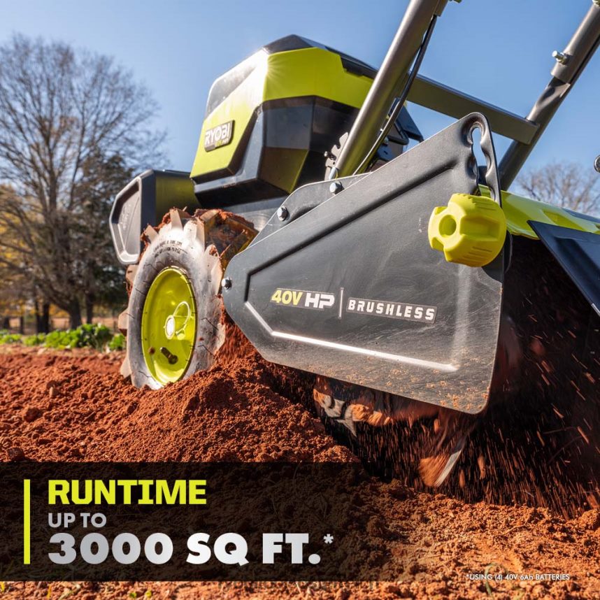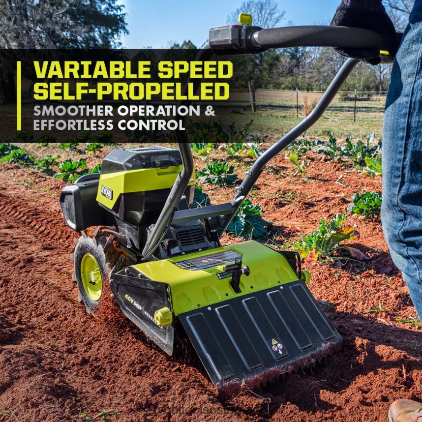 RYOBI Bürstenlose 40-V-PS-Fräse mit 18 hinteren Zinken draussen 6V8HV6449