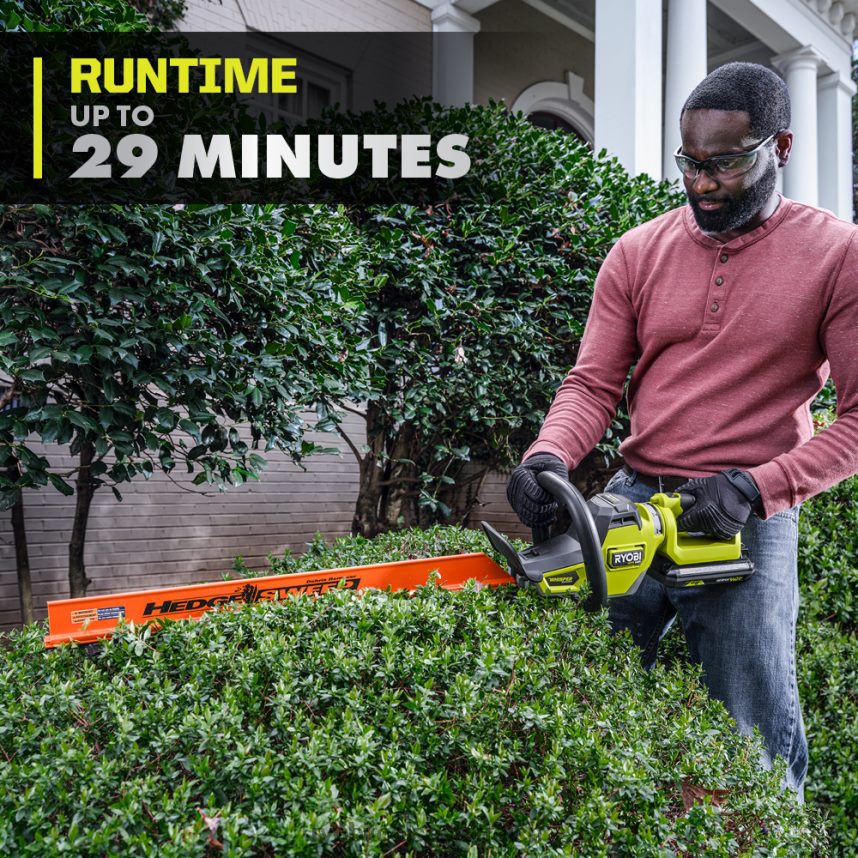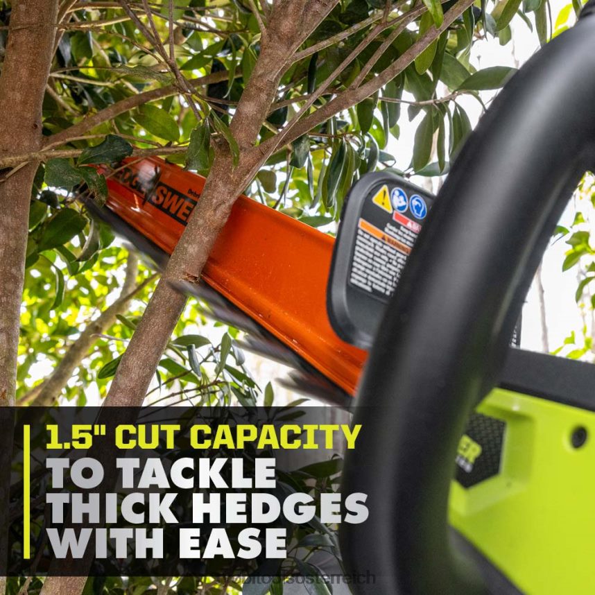 Erweitern Sie Ihr 40-V-System mit dem 26-Zoll-Heckenscheren-Kit mit 40 V PS. Die 40-V-PS-Technologie liefert mehr Leistung als eine 23-cm3-Gas-Heckenschere, ohne dass Sie sich um Benzin oder Kabel kümmern müssen. Mit einem 40-V-2-Ah-Akku erreichen Sie eine Laufzeit von bis zu 29 Minuten. Die 40-V-PS-Technologie kombiniert einen bürstenlosen Motor mit fortschrittlicher Elektronik und leistungsstarker Lithium-Technologie mit 26-Zoll-Klingen und einer beeindruckenden 1-Zoll-Schnittkapazität, um dicke Hecken mühelos zu bewältigen. Die Anti-Jam-Technologie verhindert, dass die Klingen an Ästen hängen bleiben, während sie doppelt wirkt Die Klingen bewegen sich mit reduzierten Vibrationen und weniger Ermüdung durch Hecken. Dieser Trimmer der Whisper-Serie ist so konstruiert, dass er 72 % leiser als Gas und sogar leiser als andere Akku-Heckenscheren ist. Ein Magnesiumgetriebe erhöht die Haltbarkeit und macht dieHeckenschere leichter. Mit dem drehbaren Griff können Sie Hecken und Sträucher bequem in allen Winkeln schneiden, während der Heckenkehr-Rückstandentferner das Entfernen von Schnittgut beim Trimmen erleichtert. Mit dem 2-Gang-Schalter können Sie zwischen zwei Schnittgeschwindigkeiten wählen, um die Leistung zu maximieren oder die Laufzeit zu optimieren. Das Beste ist, dass es Teil des Ryobi 40-V-Systems ist, bei dem jede 40-V-Batterie mit jedem 40-V-Produkt funktioniert. Für diese 40-V-HP-Heckenschere gilt die 5-jährige Herstellergarantie von Ryobi. Sie umfasst die 40-V-Heckenschere Ry40606, einen Heckenkehr-Rückstandentferner, eine Scheide und eine Bedienungsanleitung. Akku und Ladegerät sind separat erhältlich.