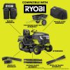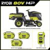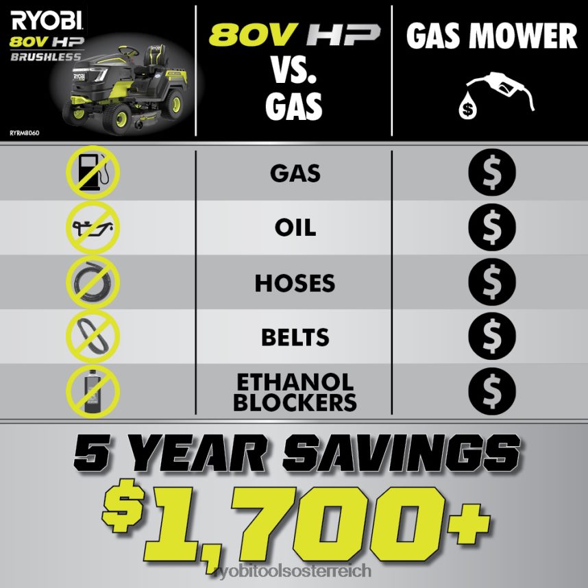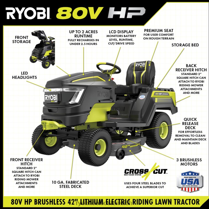 Wir stellen Ryobis ersten mit Lithium-Ionen-Batterie betriebenen Rasentraktor vor, den Ryobi 80V PS 42″ Lithium-Elektro-Reittraktor Rasentraktor. Die 80-V-PS-Technologie kombiniert bürstenlose Motoren, fortschrittliche Elektronik und Lithium-Ionen-Batterien, um die Leistung zu liefern, die einem 21-PS-Benzinmotor* entspricht, und liefert die gesamte Leistung, ohne Benzin, Motorwartung und deutlich weniger Lärm. Dieser Traktor ist Angetrieben von 3 bürstenlosen Motoren und 3 80-V-10-Ah-Batterien, um bis zu 2 Hektar pro Ladung zu schneiden. Wenn die Arbeit erledigt ist, ist der Traktor mit dem mitgelieferten Hyper-Ladegerät und dem integrierten Ladeanschluss in weniger als 2,5 Stunden vollständig aufgeladen. Das vielseitigste Fahren Rasentraktoren in der Branche verfügen über Ablagefächer vorne und hintenTransportieren Sie Mulch, Baumstämme, Pflanzen oder andere Materialien im Garten. Mit einer Tragfähigkeit von 500 Pfund ist das Abschleppen schnell erledigt. und eine universelle 2-Zoll-Vierkantkupplung vorne und hinten am Traktor. Der Traktor ist mit einem 10-Gauge-Hochleistungsstahldeck und dem Cross-Cut-Mehrmessersystem ausgestattet, das mit 4 Stahlmessern einen hervorragenden Schnitt erzielt. Entfernen Sie das Mähwerk in weniger als 90 Sekunden für eine schnelle Klingenwartung. Der vollfarbige, hintergrundbeleuchtete LCD-Bildschirm zeigt Laufzeit, Akkustand und Ladestatus an, während Sie mit der Ryobi-Aufsitzmäher-App Ihren Ladestatus von Ihrem Telefon aus überwachen können. Mobiler Service in ausgewählten Regionen verfügbar Wenn Ihr Aufsitzmäher gewartet werden muss, kann ein zertifizierter Ryobi-Supporttechniker die Diagnose und Wartung direkt von zu Hause aus durchführen. Bei einigen Diensten kann es erforderlich sein, dass Sie Ihren Mäher zu einem der über 300 Servicezentren im ganzen Land bringen. Dieser Traktor wird mit Stolz in den USA hergestellt Materialien aus aller Welt und 5 Jahre beschränkte Garantie.