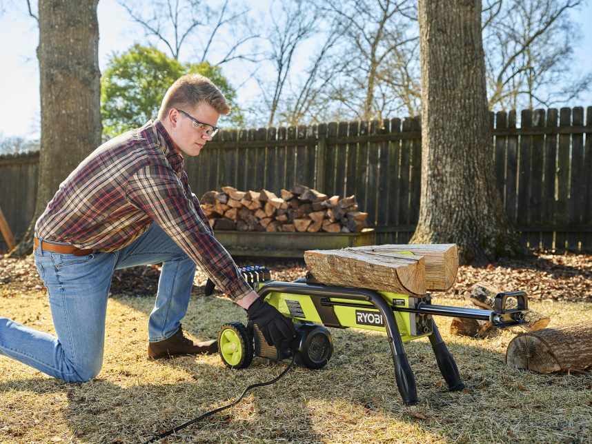 RYOBI Elektrischer Holzspalter mit 5 Tonnen und 15 Ampere draussen 6V8HV6424