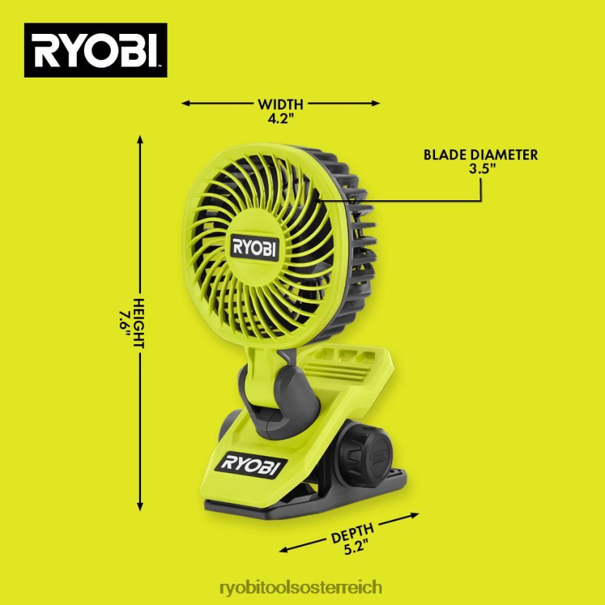 Ryobi stellt das USB-Lithium-Klemmlüfter-Kit vor. Dieser USB-Lithium-Klemmventilator ist unser bislang kompaktester und tragbarster Ventilator. Bleiben Sie kühl mit über 7 Stunden Laufzeit und 2 Geschwindigkeitseinstellungen. Dieser Ventilator ist gleichermaßen kompakt und leistungsstark mit bis zu 135 Kubikfuß pro Minute (cfm). Der in mehrere Richtungen schwenkbare Kopf und die integrierte Klemmbasis mit 1-1/4-Zoll-Klemmkapazität machen ihn zur ultimativen, vielseitigen Kühllösung. Die kompakte Größe und die integrierten Trageschlaufen verbessern die Tragbarkeit dieses Ventilators, sodass Sie ihn überallhin mitnehmen können. Diese Produktmerkmale Eine LED-Anzeige signalisiert, wenn der Akku geladen ist (grün) oder wenn der Akku fast leer ist (rot), während er verwendet wird. Der USB-Lithium-Klemmventilator ist Teil des USB-Lithium-Systems, das kompakte, tragbare, wiederaufladbare Lösungen für kabellose Geräte bietetLeistung und Produktivität. Für dieses USB-Lithium-Klemmlüfter-Kit gilt die zweijährige Herstellergarantie von Ryobi. Es umfasst (1) USB-Lithium-Klemmlüfter FVF51, (1) USB-Lithium-2-Ah-Batterie FVB01, USB-Kabel und eine Bedienungsanleitung.